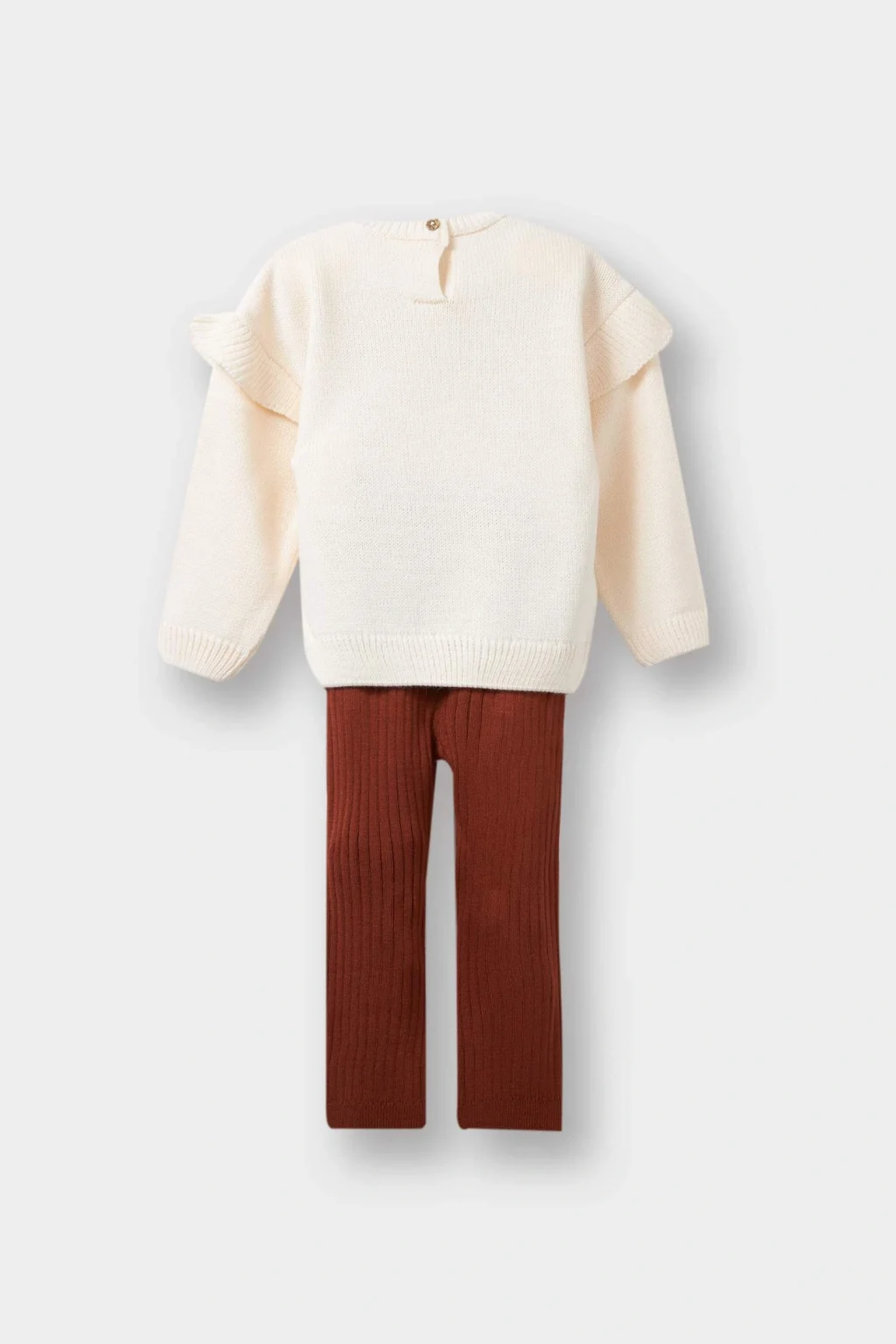 Kız Bebek 2'li Takım, çiçek desenli sweatshirt ve esnek tayt ile şıklığı ve rahatlığı bir arada sunar. Yumuşak kumaşı hassas cilde dost olup, miniklerin hareketlerini kolaylaştırır. Günlük kullanıma uygun, sevimli ve konforlu bir tercih.