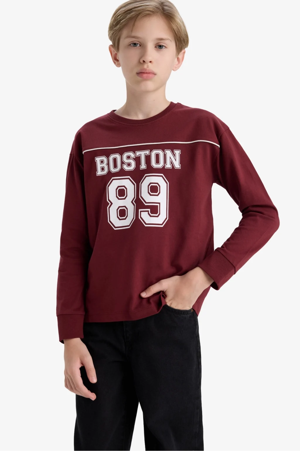 Erkek çocuklar için bisiklet yaka baskılı uzun kollu tişört, yumuşak kumaşı ve rahat kesimiyle günlük kullanıma uygundur. Canlı baskılarıyla tarzını yansıtır.