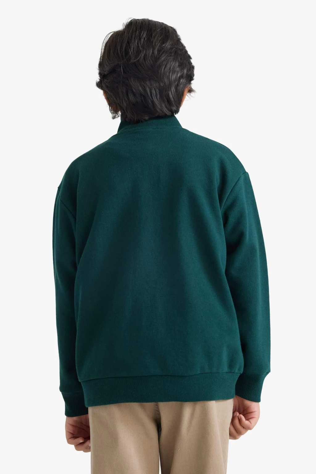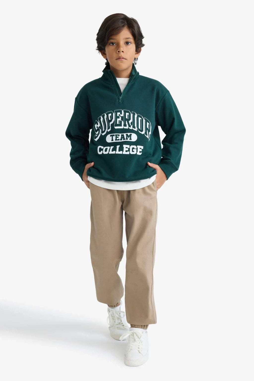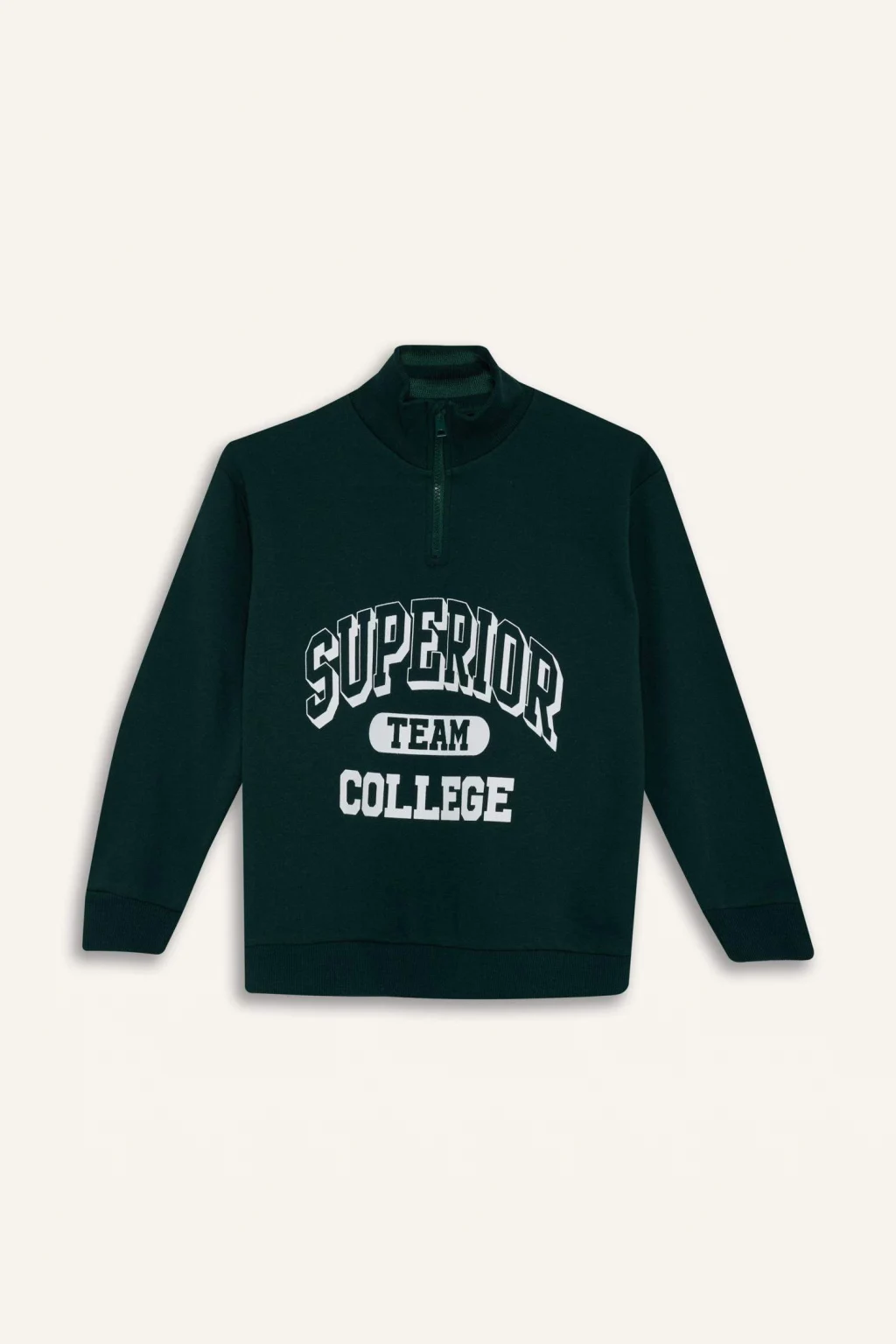 Dik yaka ve fermuar detayıyla modern bir stil sunan erkek çocuk sweatshirtü, hareket özgürlüğü sağlar. Baskılı tasarımıyla dikkat çeken bu parça, günlük kullanıma uygundur.