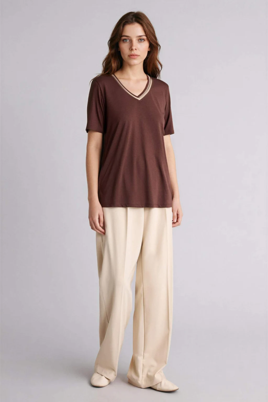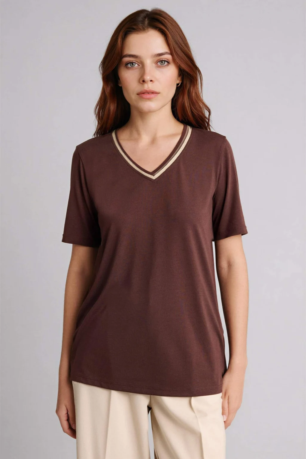 Defacto G9547AXBN320 Kahve Slım Fıt Kayık Yaka Ribana Tişört