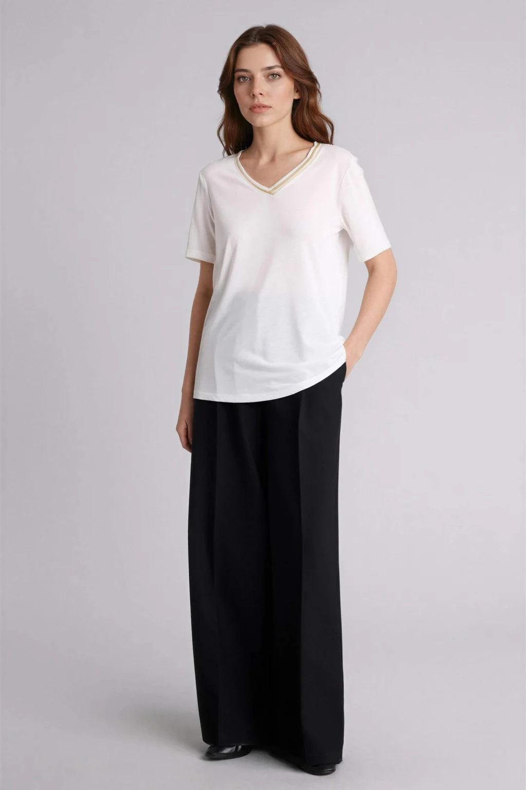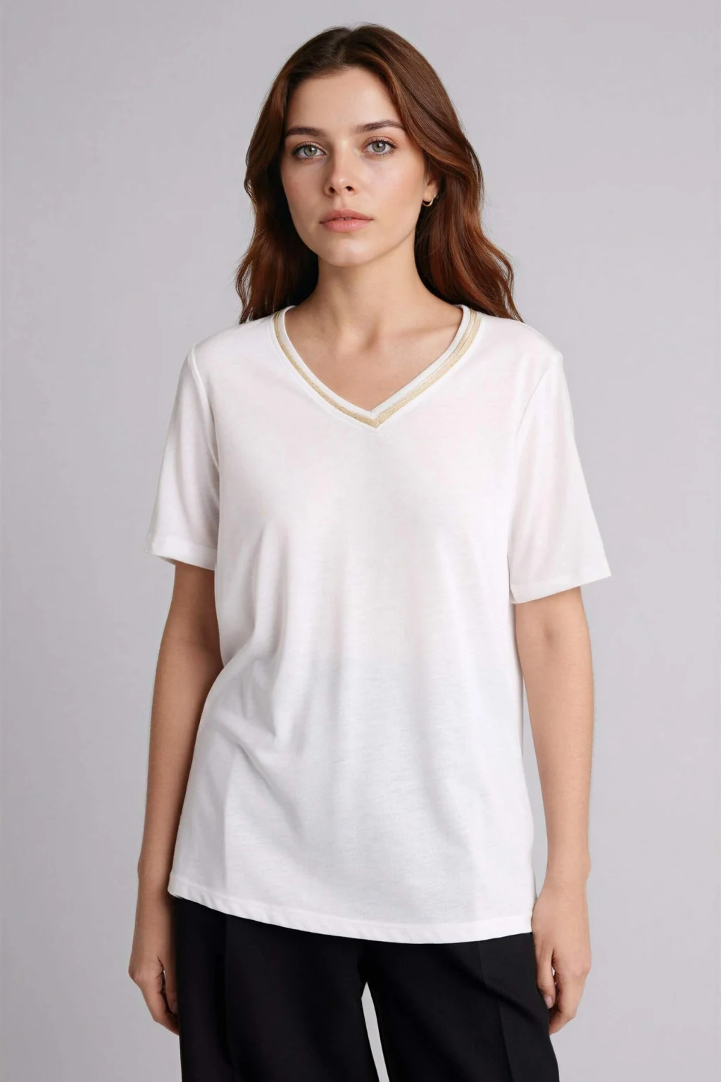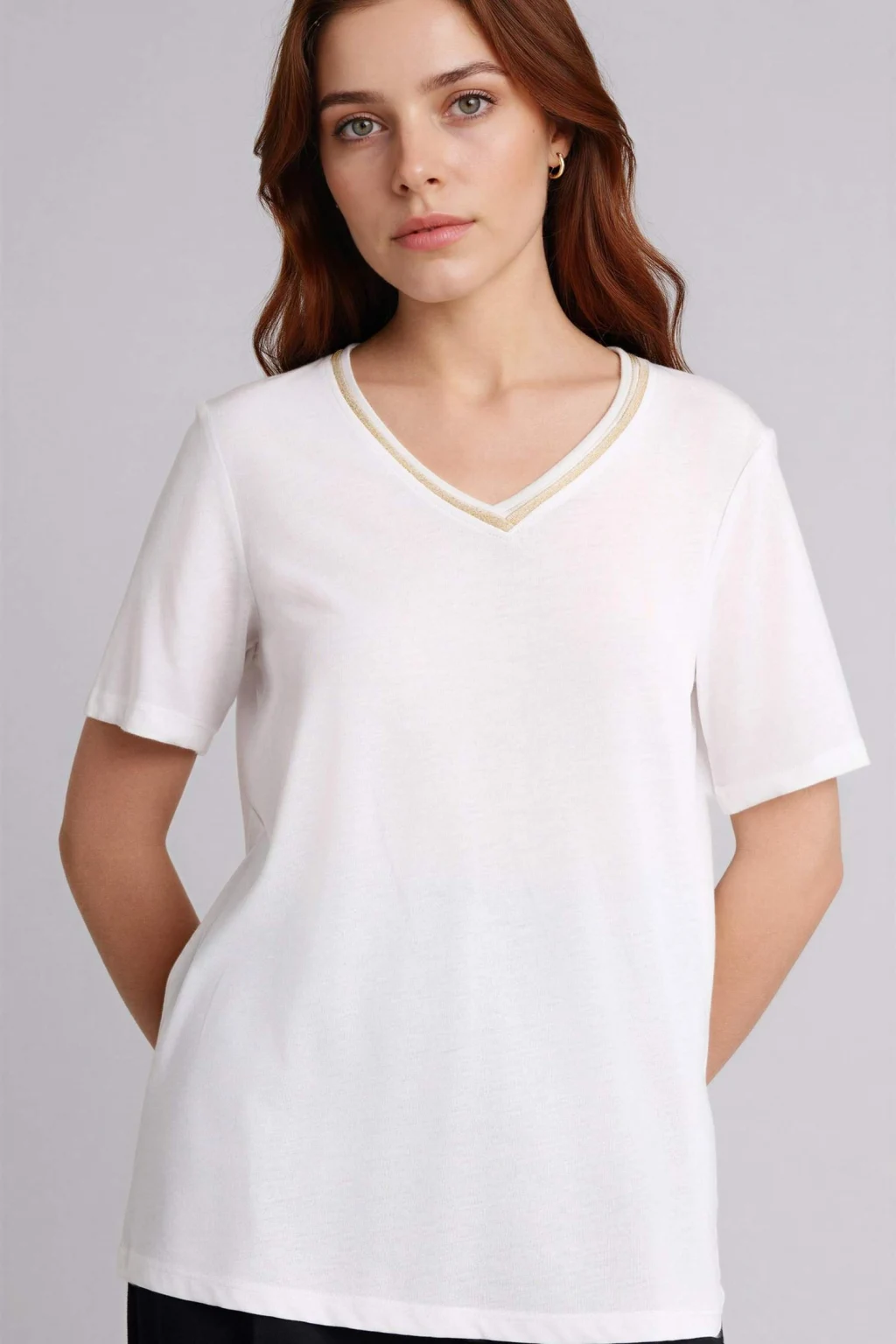 Defacto H0561AXER105 Ekru Regular Fıt V Yaka Kısa Kollu Tişört