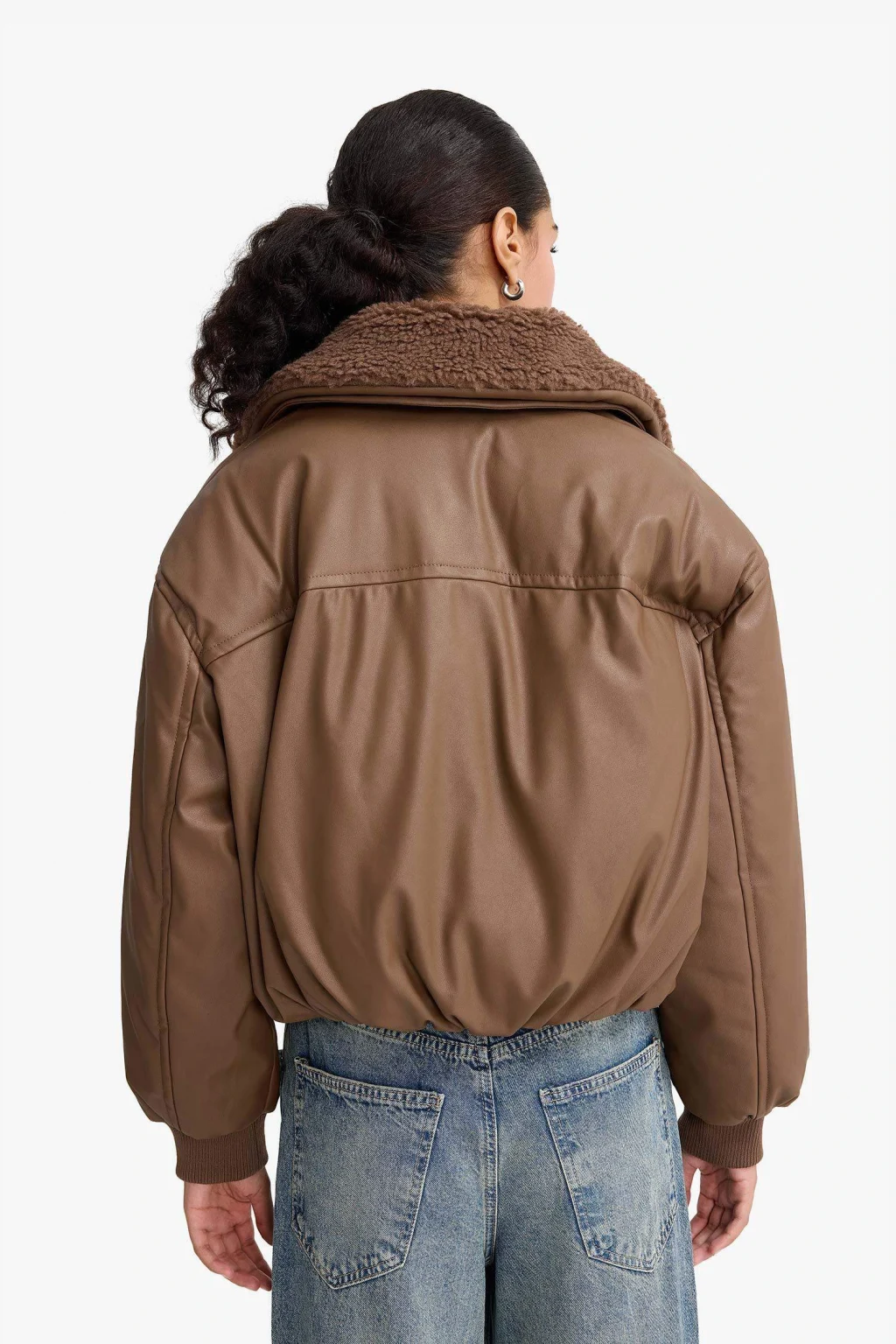 Polo yaka detayı ve regular fit kesimiyle klasik ve maskülen bir tarz sunan suni deri mont, şık duruşuyla dikkat çeker. Dayanıklı yapısıyla uzun süreli kullanım sağlar, günlük kombinlere güçlü bir dokunuş katar.