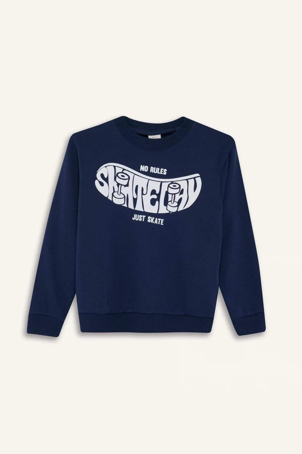 Erkek Çocuk Bisiklet Yaka Baskılı Sweatshirt, eğlenceli baskıları ve rahat kesimiyle çocukların favorisi olur. Yumuşak kumaşı gün boyu konfor sağlarken, bisiklet yaka tasarımı modern bir görünüm sunar. Günlük aktivitelerde stil ve rahatlığı bir arada sunan ideal bir parça.