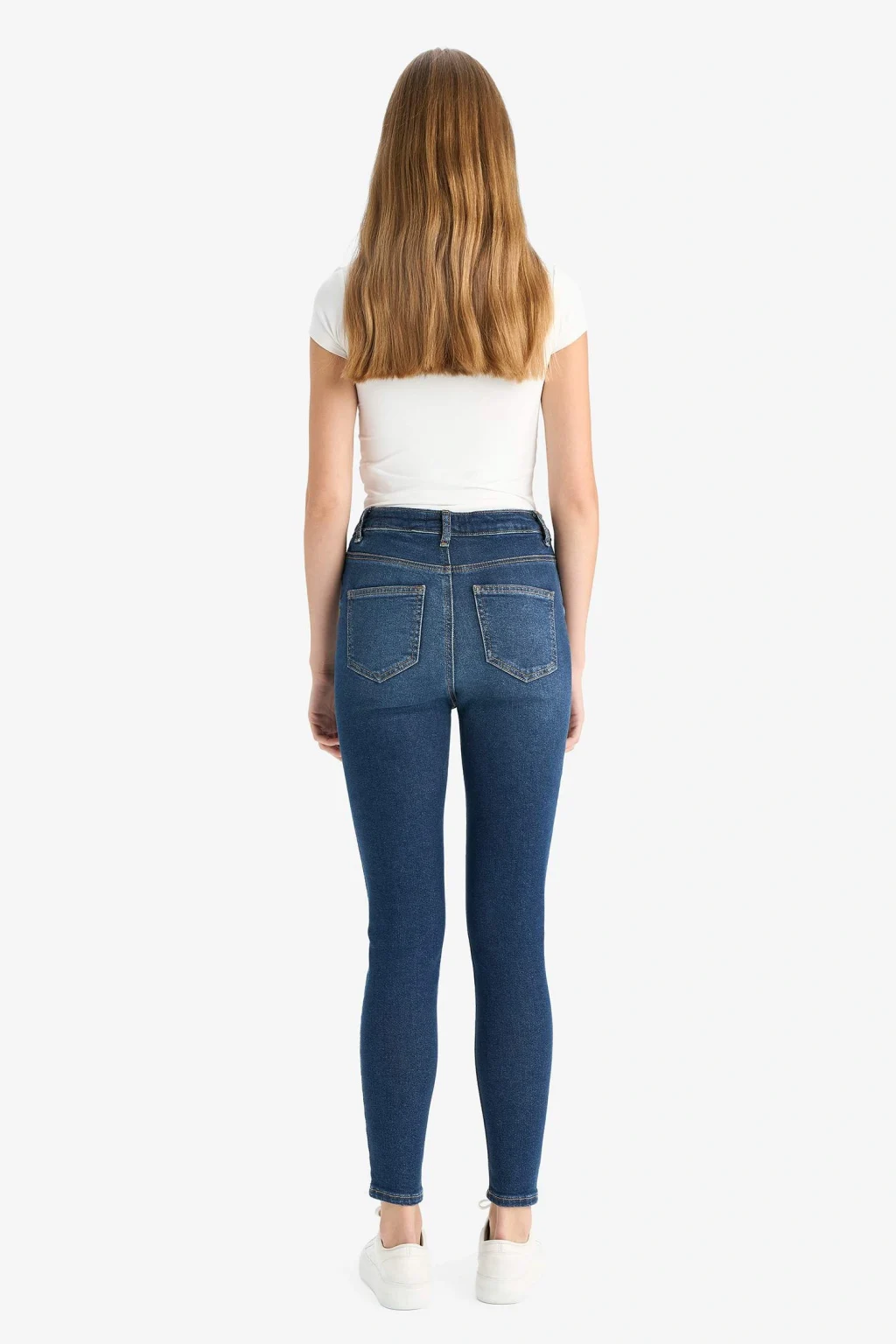 Skinny fit kesimi ve yüksek bel tasarımıyla öne çıkan bilek boy jean pantolon, modern ve şık bir görünüm sunar. Esnek yapısıyla rahat hareket imkânı sağlar.