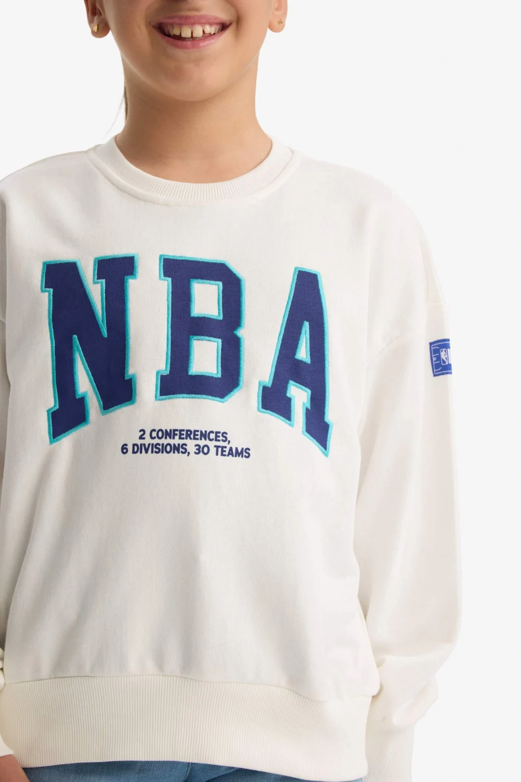 Kız Çocuk NBA Wordmark Oversize Sweatshirt, geniş kesimi ve yumuşak kumaşıyla rahat bir kullanım sunar. Bisiklet yaka tasarımı ve ikonik NBA baskısı ile sportif ve şık bir stil kazandırır.