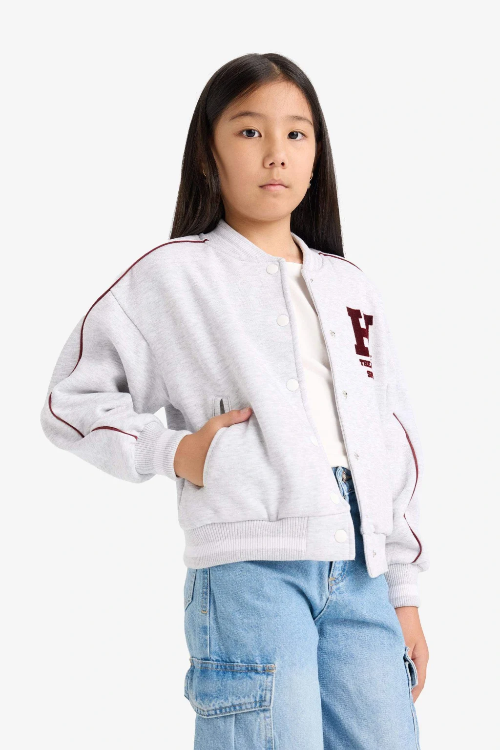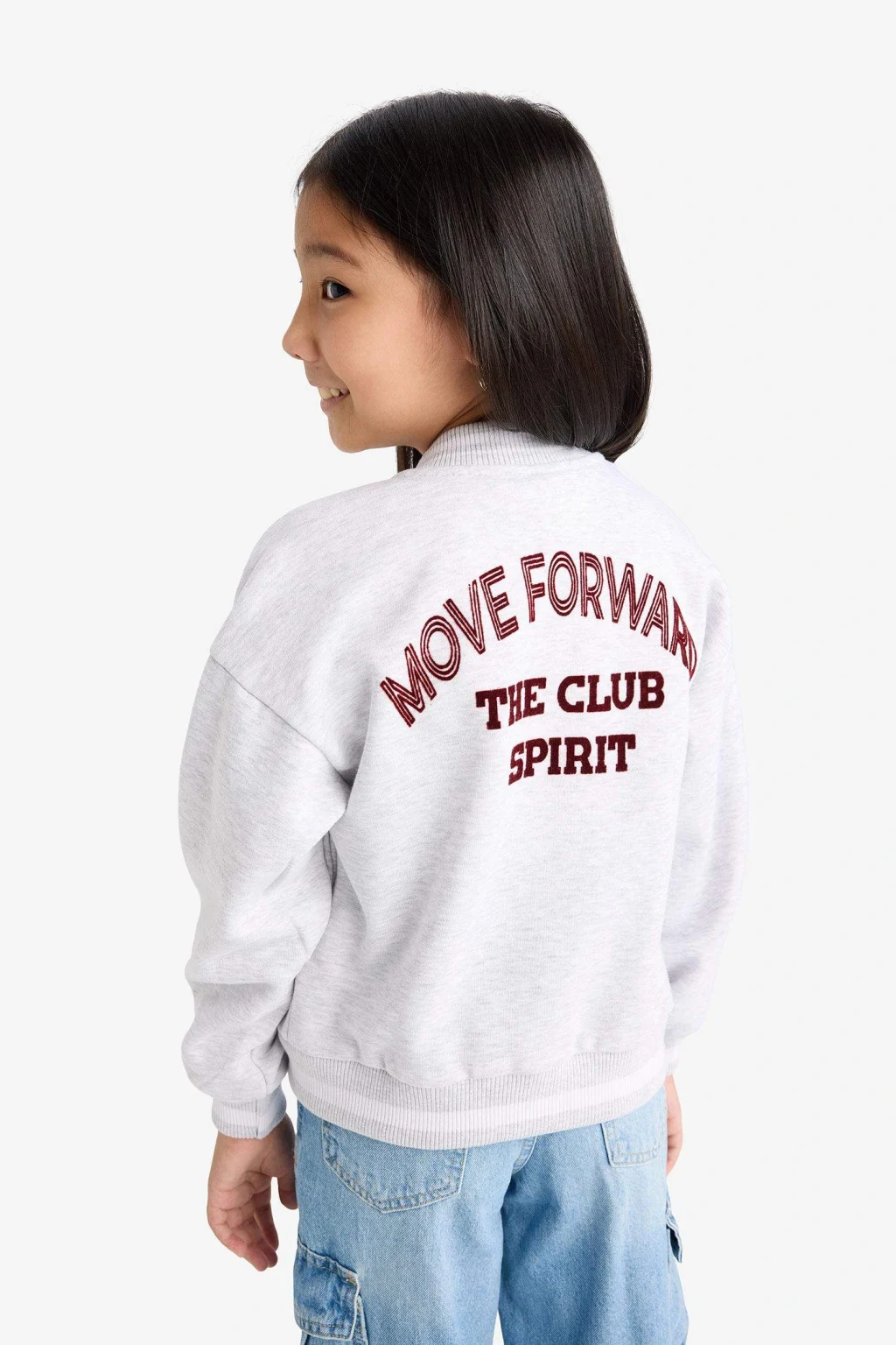 Kız Çocuk Kolej Yaka Sırt Baskılı Bomber Hırka, şık kolej yaka detayı ve hareketli sırt baskısıyla stiline dinamik bir dokunuş katar. Rahat kesimi ve yumuşak kumaşıyla gün boyu konfor sağlar.