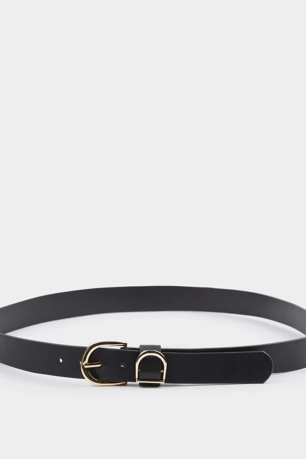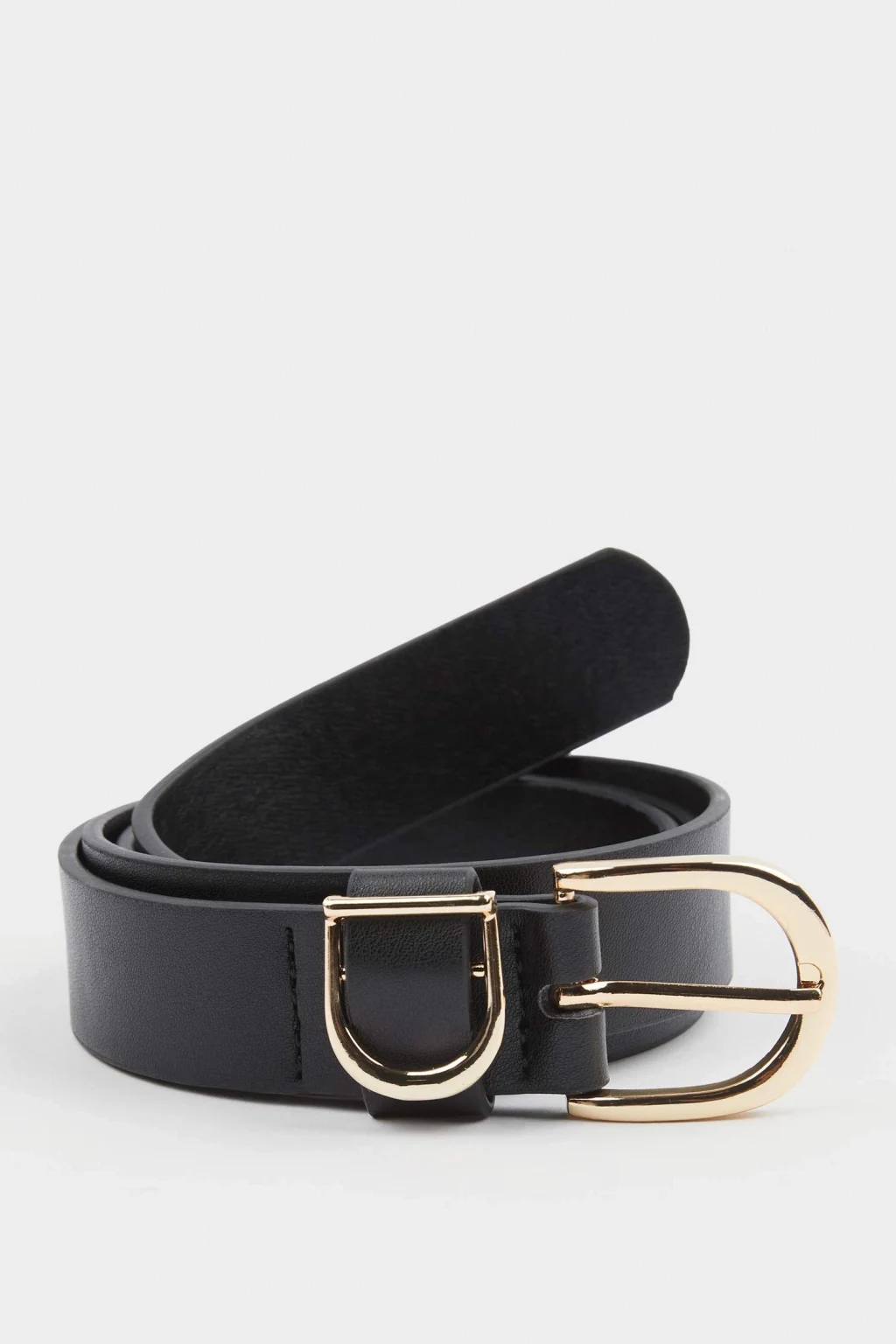 Defacto F3271 Siyah Kadın Oval Toka Suni Deri Jean Kemeri