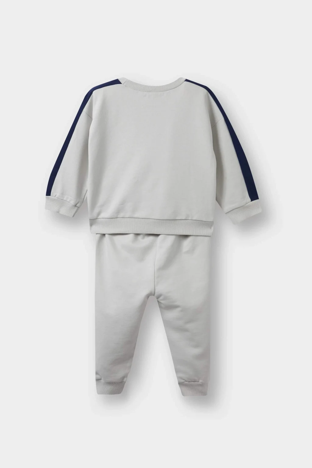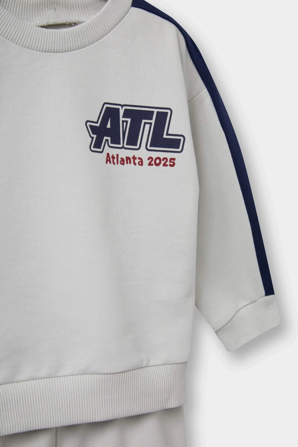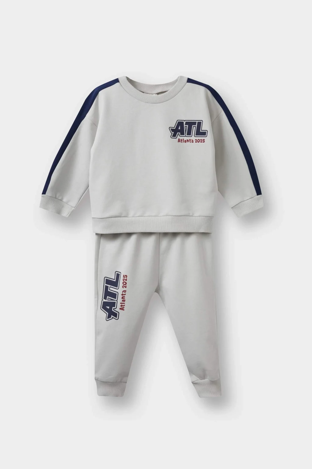 Erkek Bebek 2'li Takım, baskılı sweatshirt ve rahat eşofman altından oluşur. Yumuşak kumaşı sayesinde miniklerin hassas cildine uyum sağlar, hareket özgürlüğü sunar. Günlük kullanım için ideal, şık ve konforlu bir set.