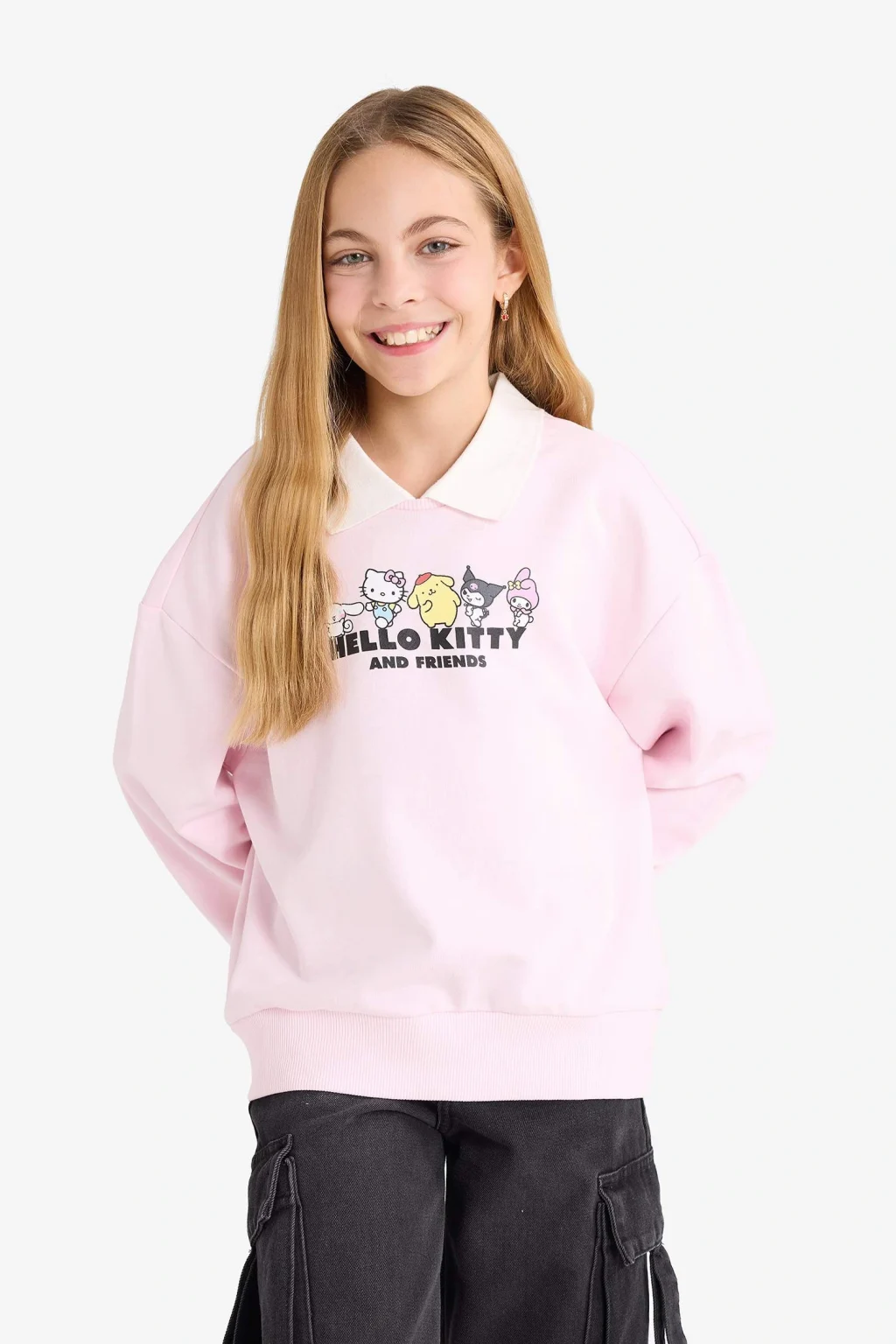 Sevimli Hello Kitty deseni ve oversize kalıbıyla dikkat çeken bu sweatshirt, kız çocukların favorisi olacak. Polo yaka detayıyla tarz bir görünüm sunarken, yumuşak dokusuyla gün boyu rahatlık sağlar.