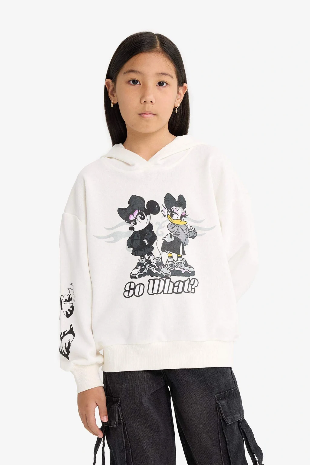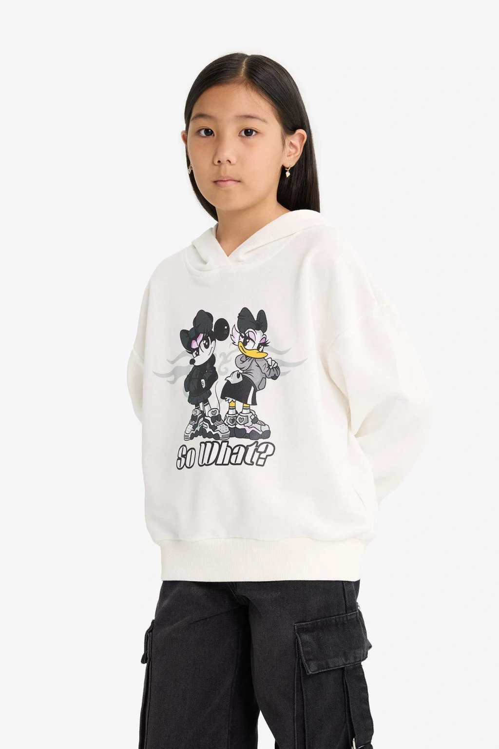 Kız Çocuk Disney Mickey & Minnie Oversize Geniş Kalıp Kapüşonlu Sweatshirt, sevimli Mickey & Minnie baskılarıyla neşeli bir tarz yaratır. Rahat kesimi ve kapüşon detayıyla hem şık hem konforludur.
