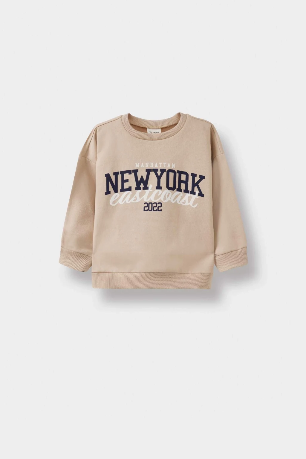 İçi yumuşacık tüylü dokusuyla sıcacık tutan bu 2'li sweatshirt seti, erkek bebekler için hem şık hem konforlu bir seçenektir. Bisiklet yaka tasarımı ve sevimli baskılarıyla günlük kullanım için idealdir.