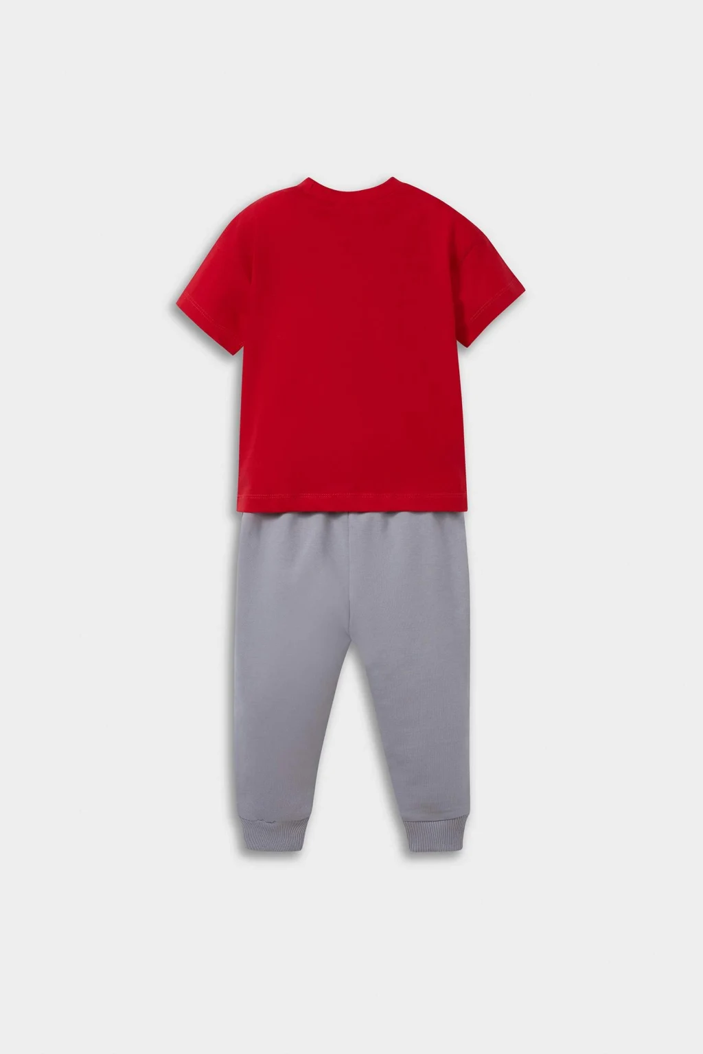 Erkek bebekler için hazırlanan 2’li takım, baskılı kısa kollu tişört ve rahat kesimli eşofman altından oluşur. Yumuşak kumaşıyla gün boyu konfor sağlayarak hareket özgürlüğü sunar.