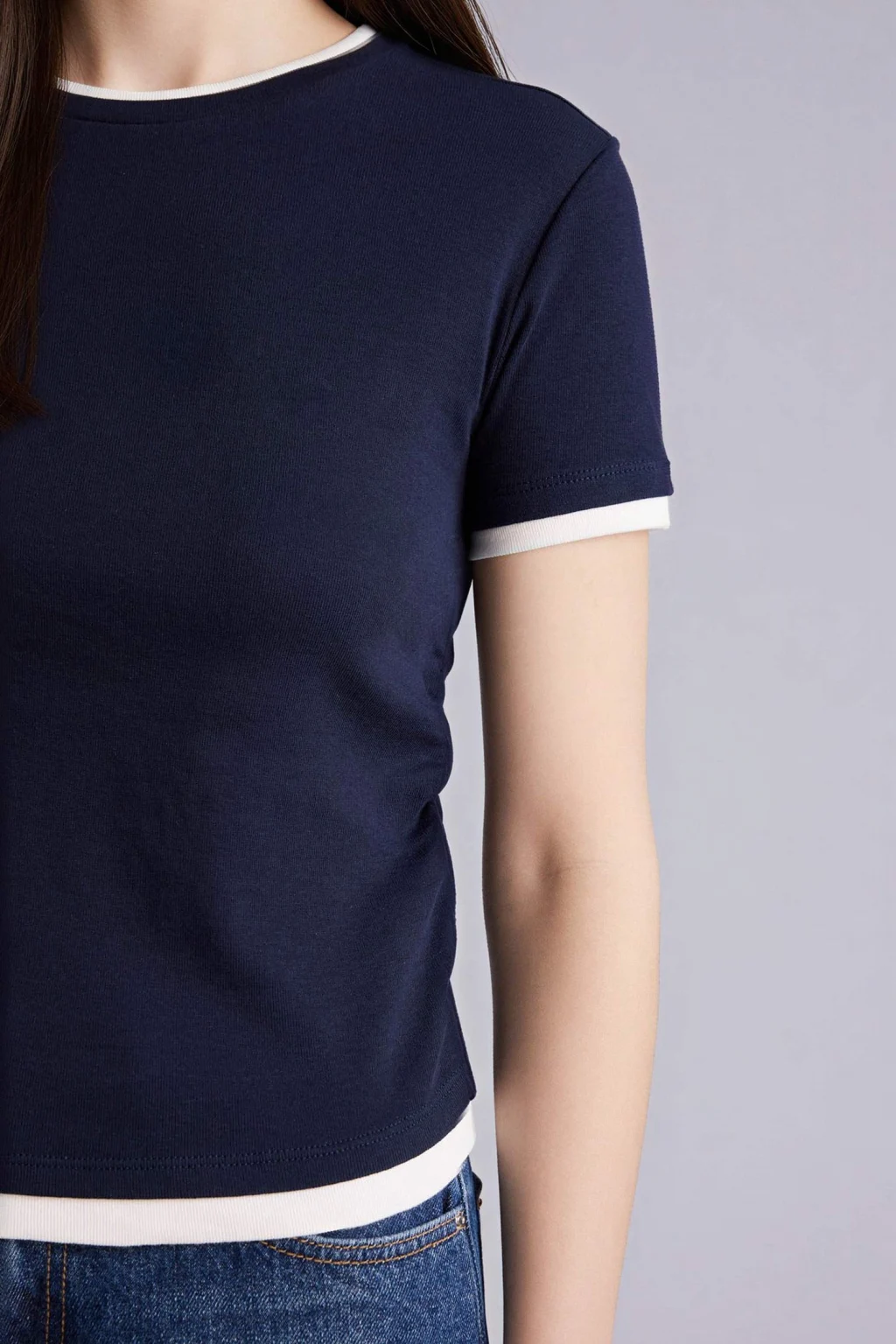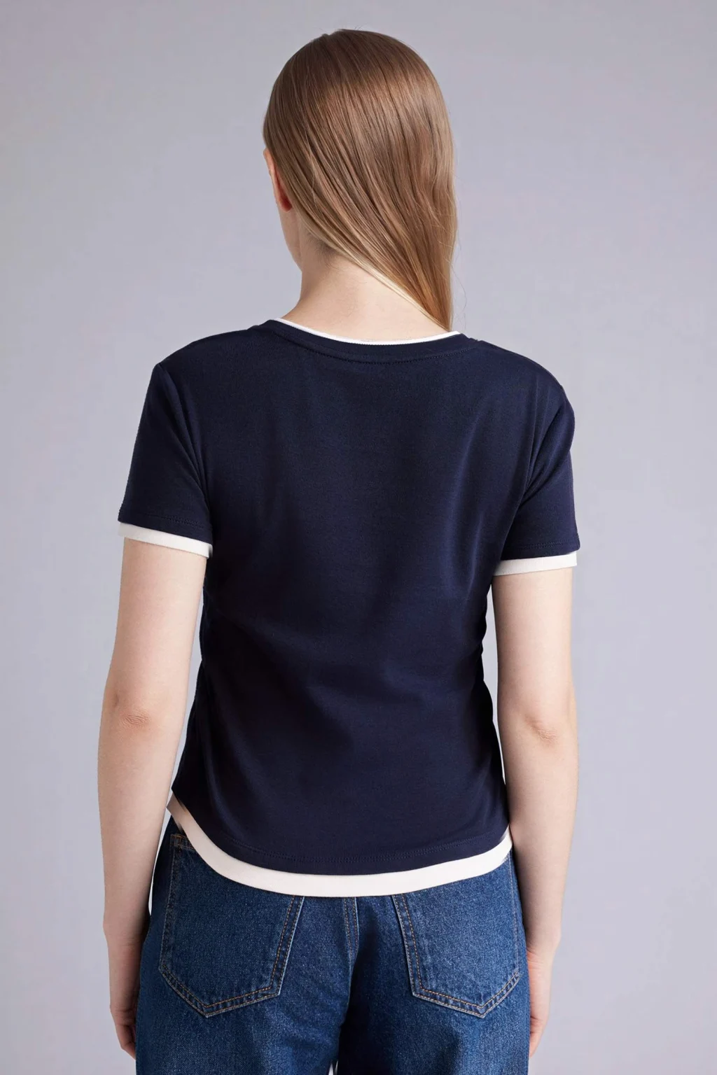 Defacto G9811AXNV31 Lacivert Slım Fıt Bisiklet Yaka Kısa Kollu Tişört