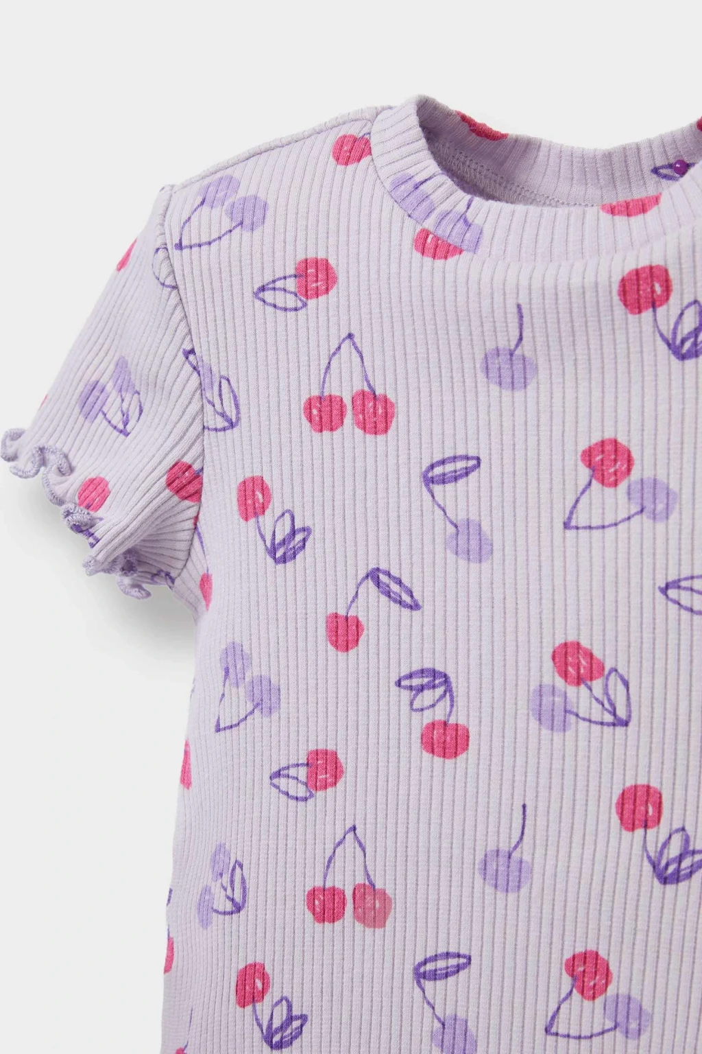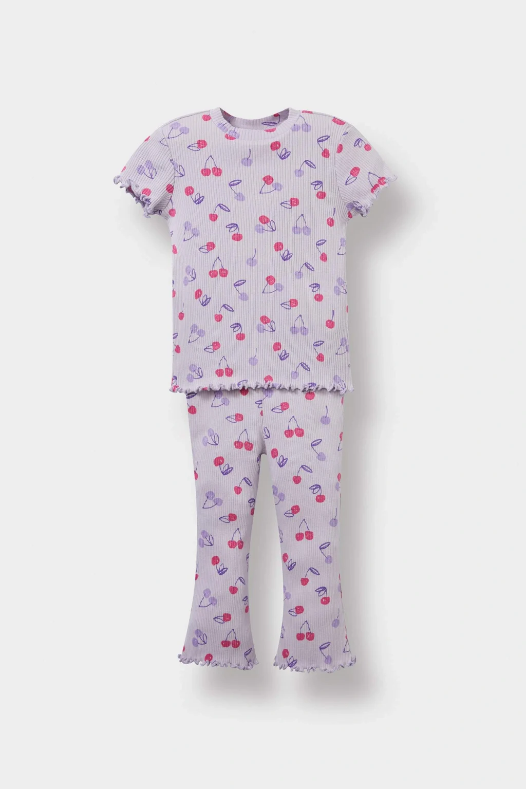 Sevimli desenleriyle dikkat çeken bu 2'li takım, fitilli kaşkorse kumaşıyla hem şık hem konforlu bir görünüm sunar. Kısa kollu tişört ve tayttan oluşan kombin, sıcak havalar için ideal bir tercihtir.
