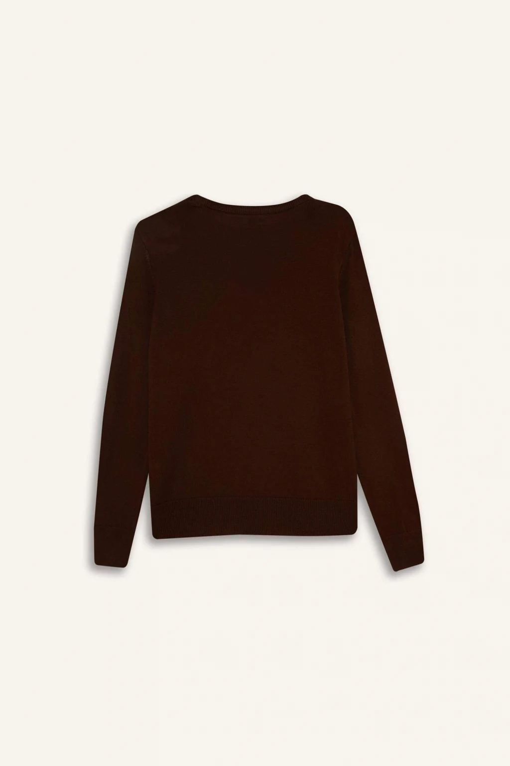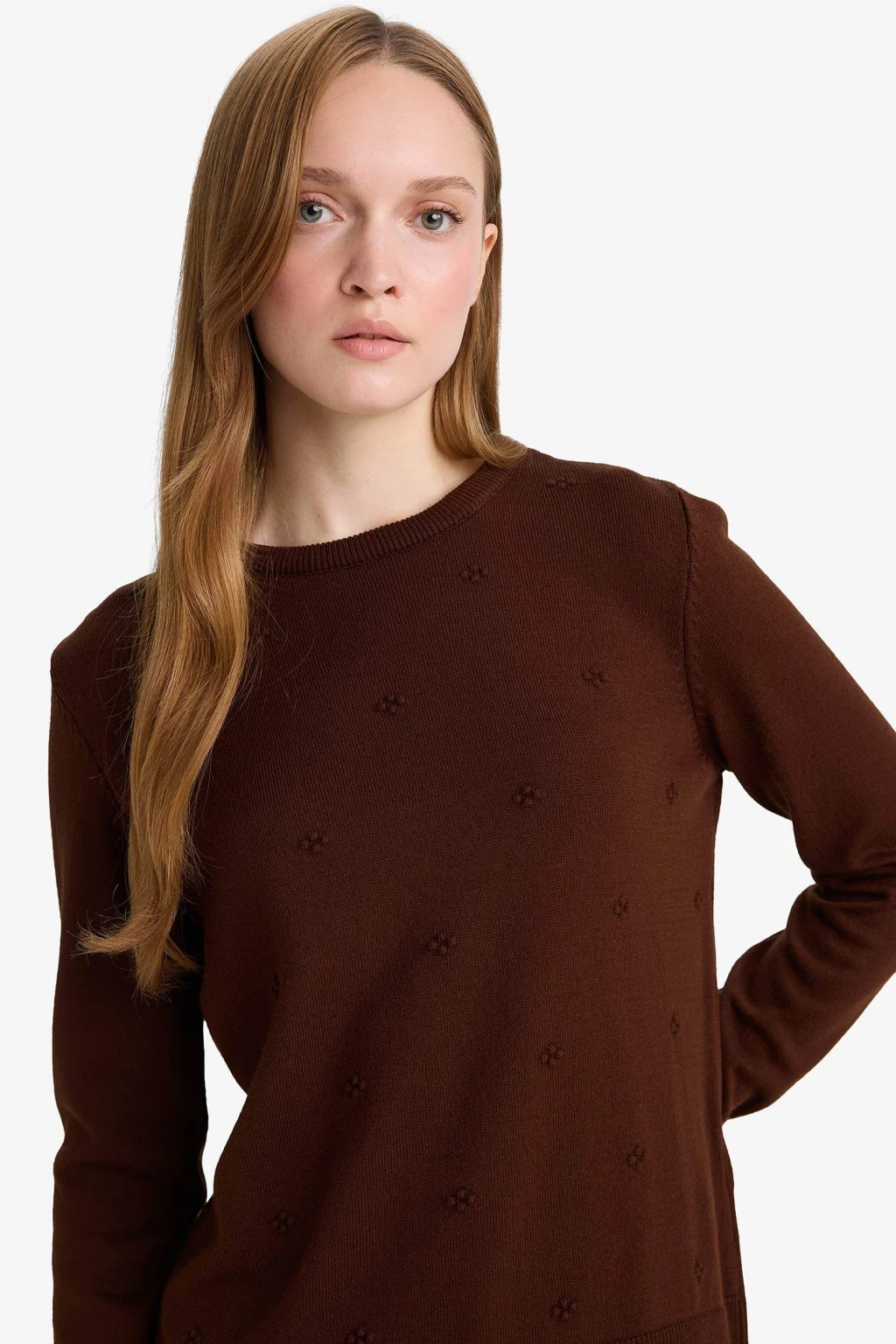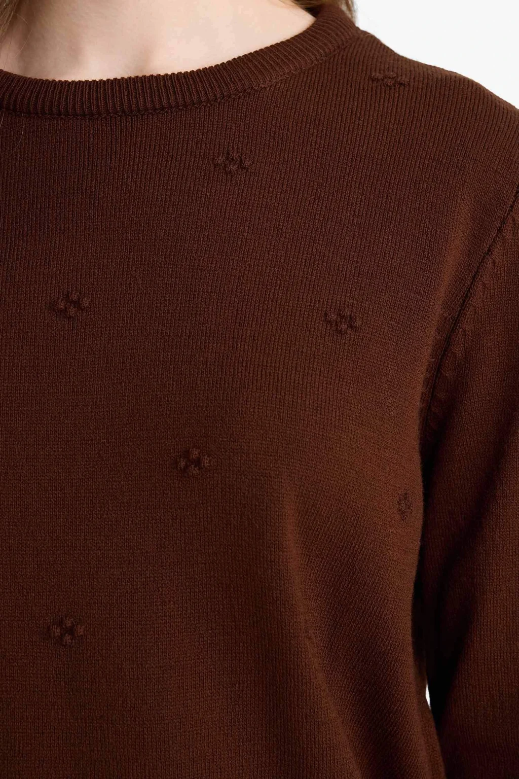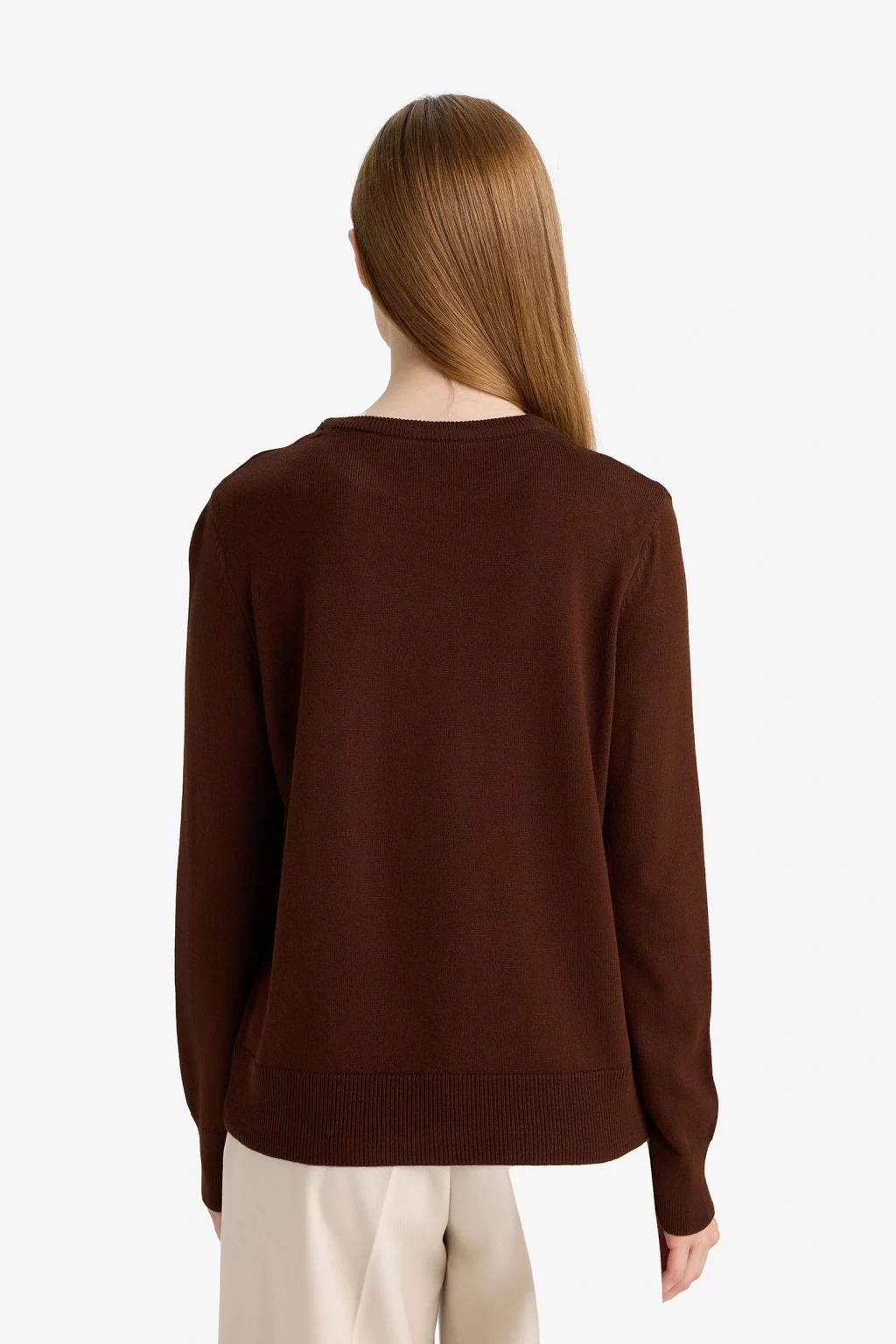 Defacto F4084AXBN320 Kahve Regular Fit Bisiklet Yaka Triko Kazak