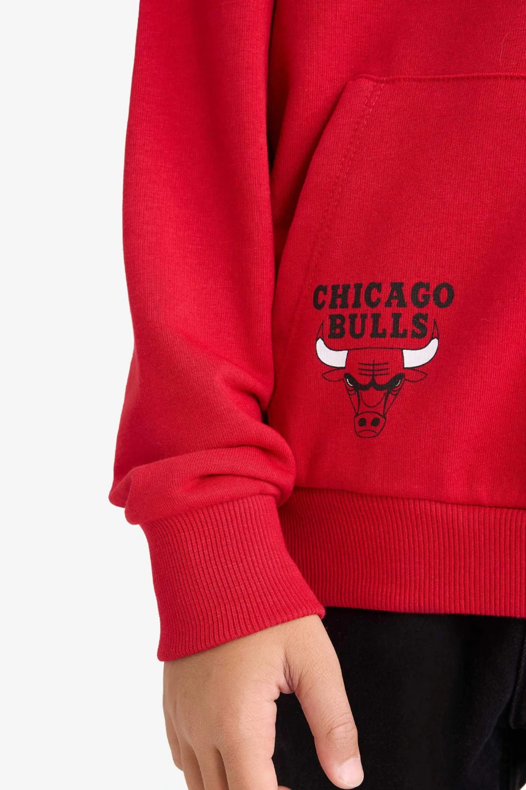 NBA Chicago Bulls kapüşonlu sweatshirt, erkek çocuklara sportif ve dinamik bir görünüm kazandırır. Yumuşak kumaşı ve rahat kesimiyle gün boyu konfor sağlar.