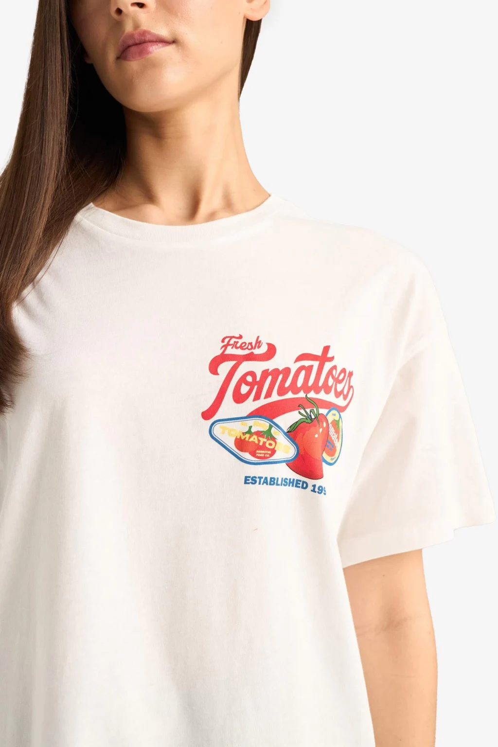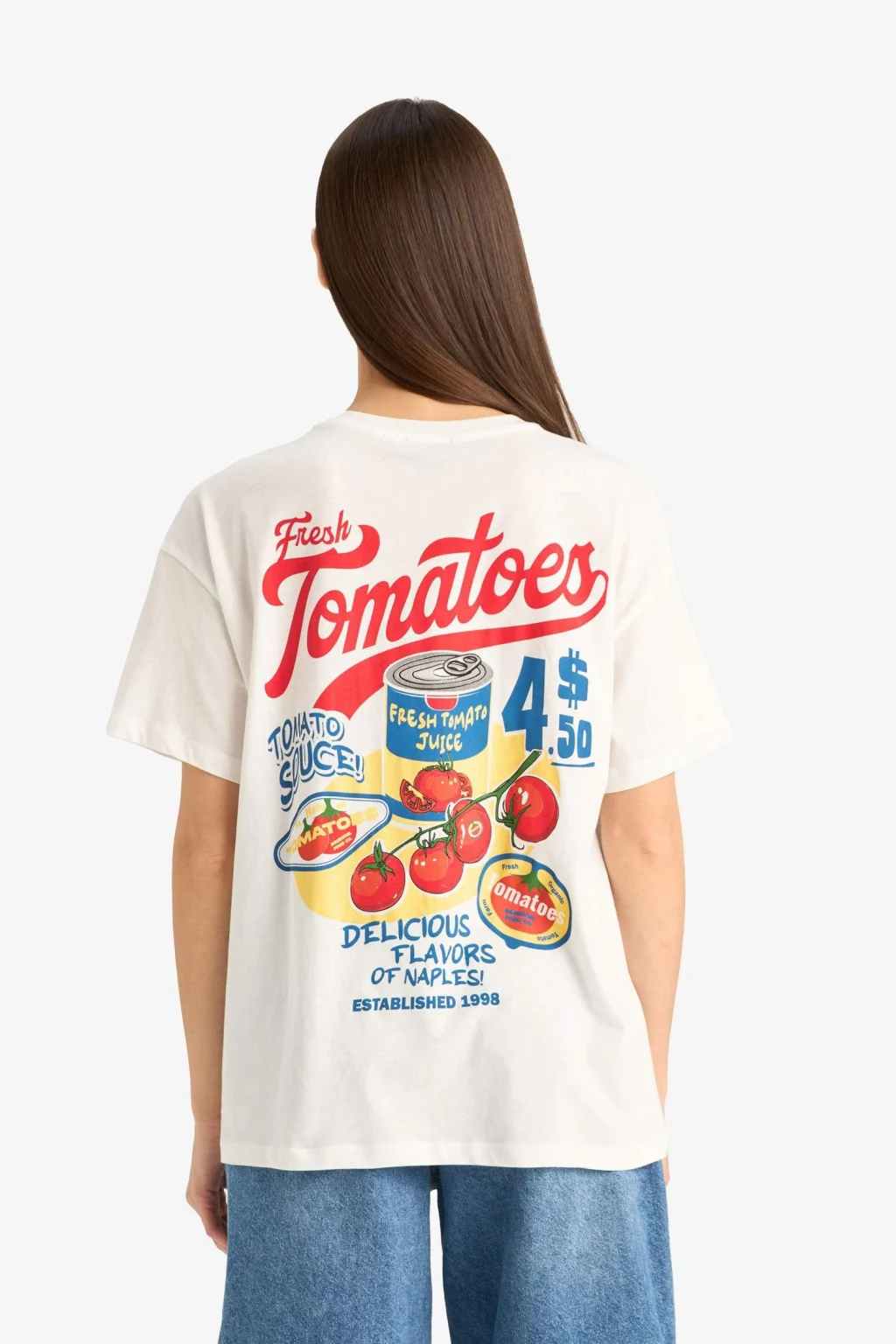 Defacto F4743 Beyaz Oversize Geniş Kalıp Bisiklet Yaka Baskılı Kısa Kollu Tişört