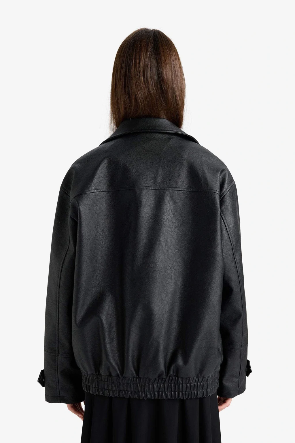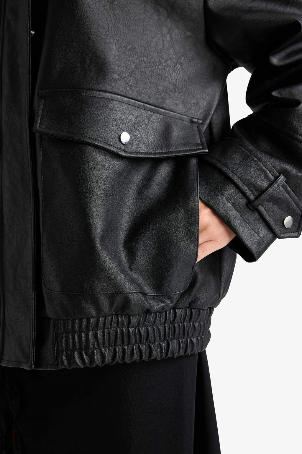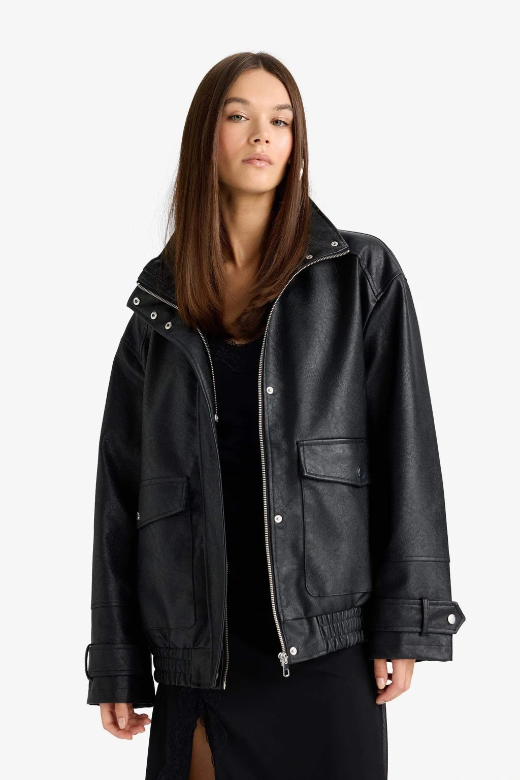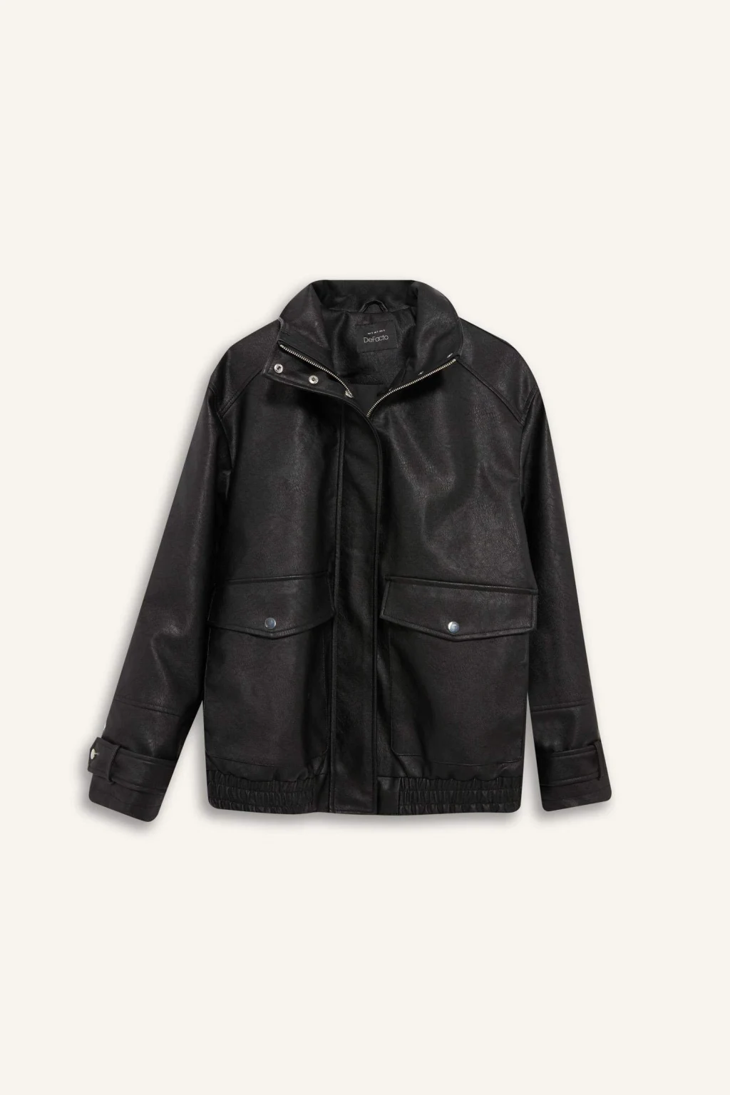 Dad fit kesimi ve fermuarlı tasarımıyla modern bir duruş sunan suni deri mont, şıklığı ve rahatlığı bir arada yaşamak isteyenler için ideal. Günlük kombinlere özgün bir hava katar.