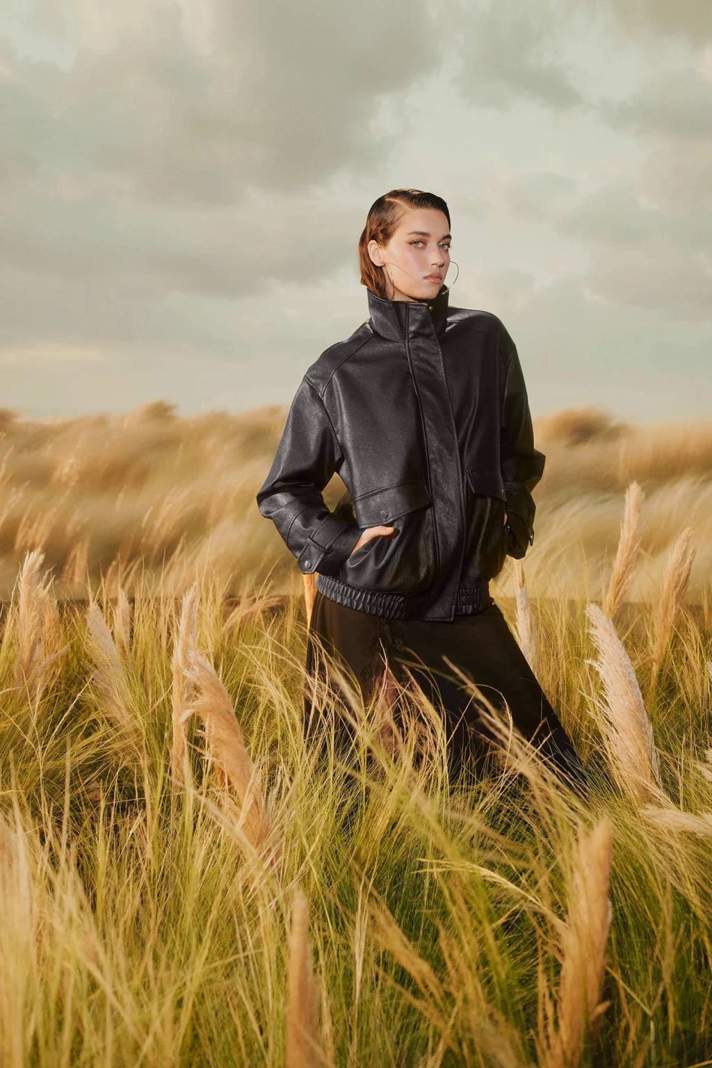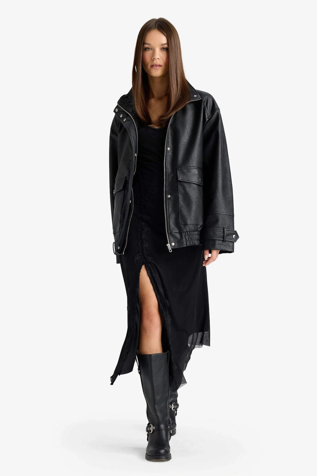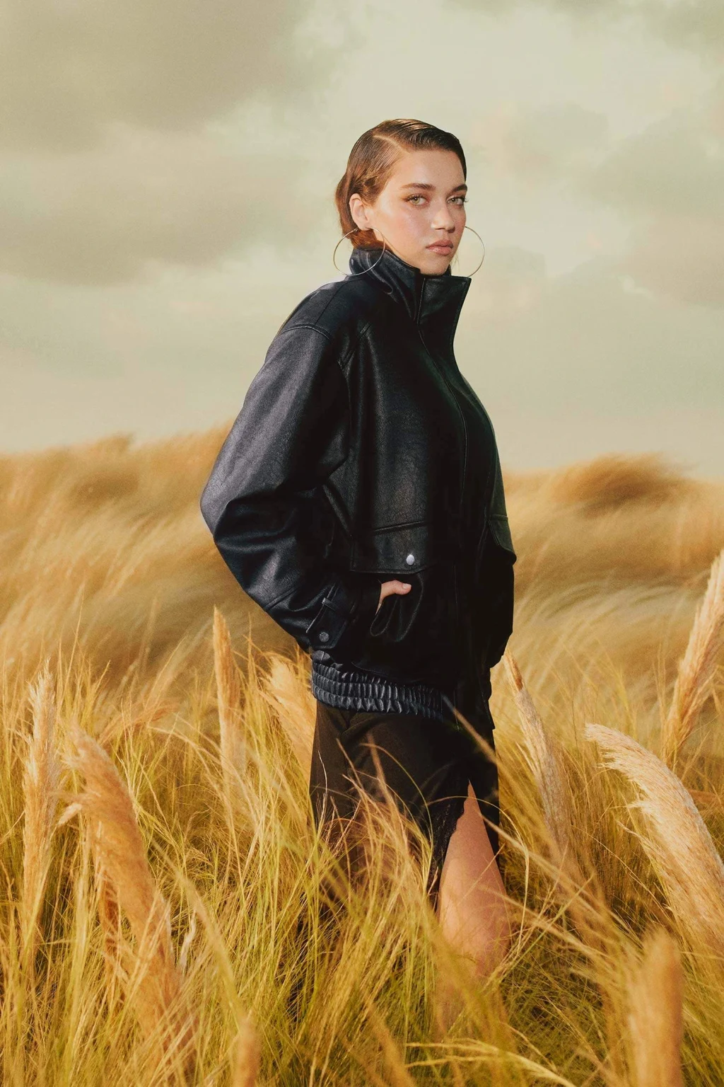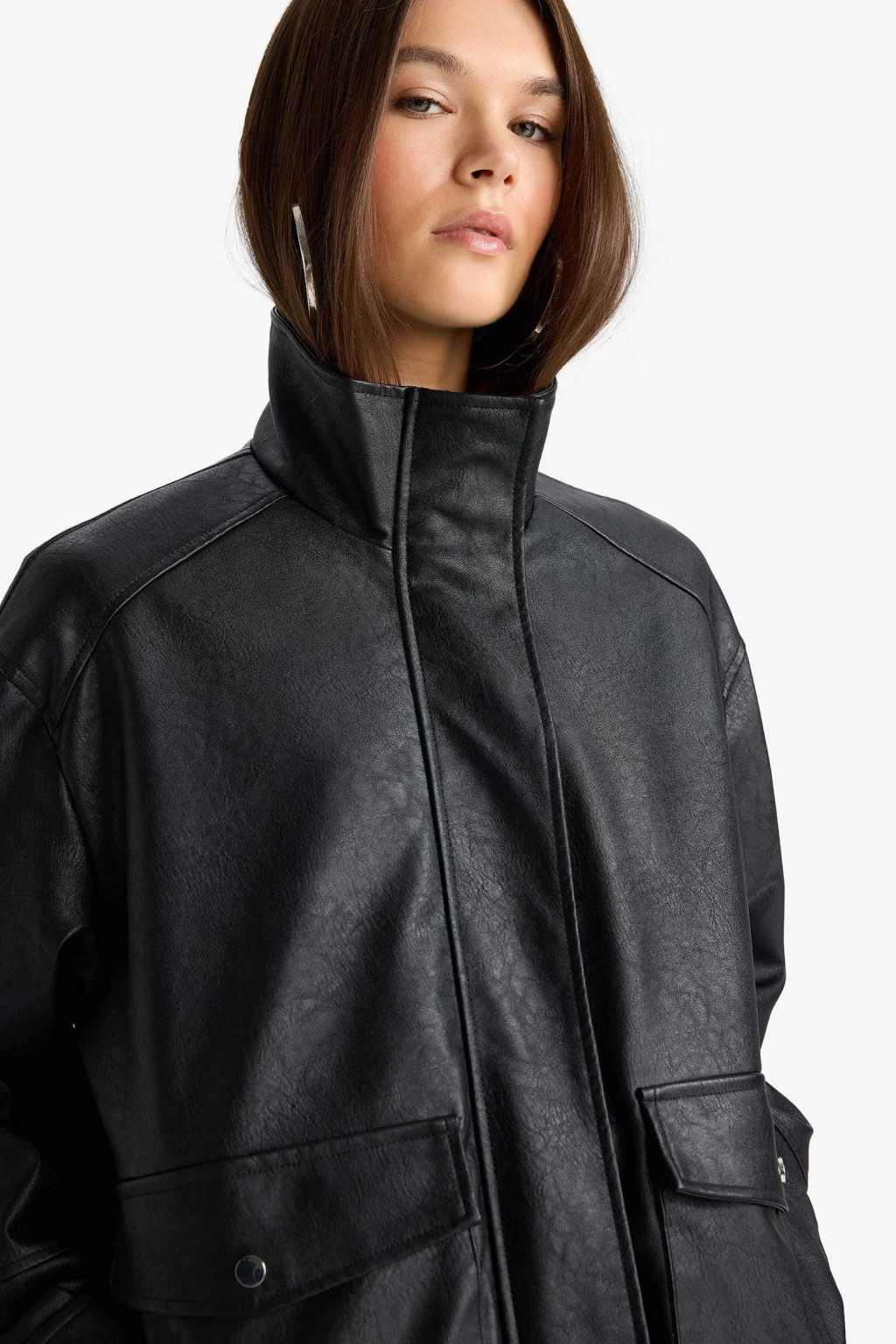 Dad fit kesimi ve fermuarlı tasarımıyla modern bir duruş sunan suni deri mont, şıklığı ve rahatlığı bir arada yaşamak isteyenler için ideal. Günlük kombinlere özgün bir hava katar.