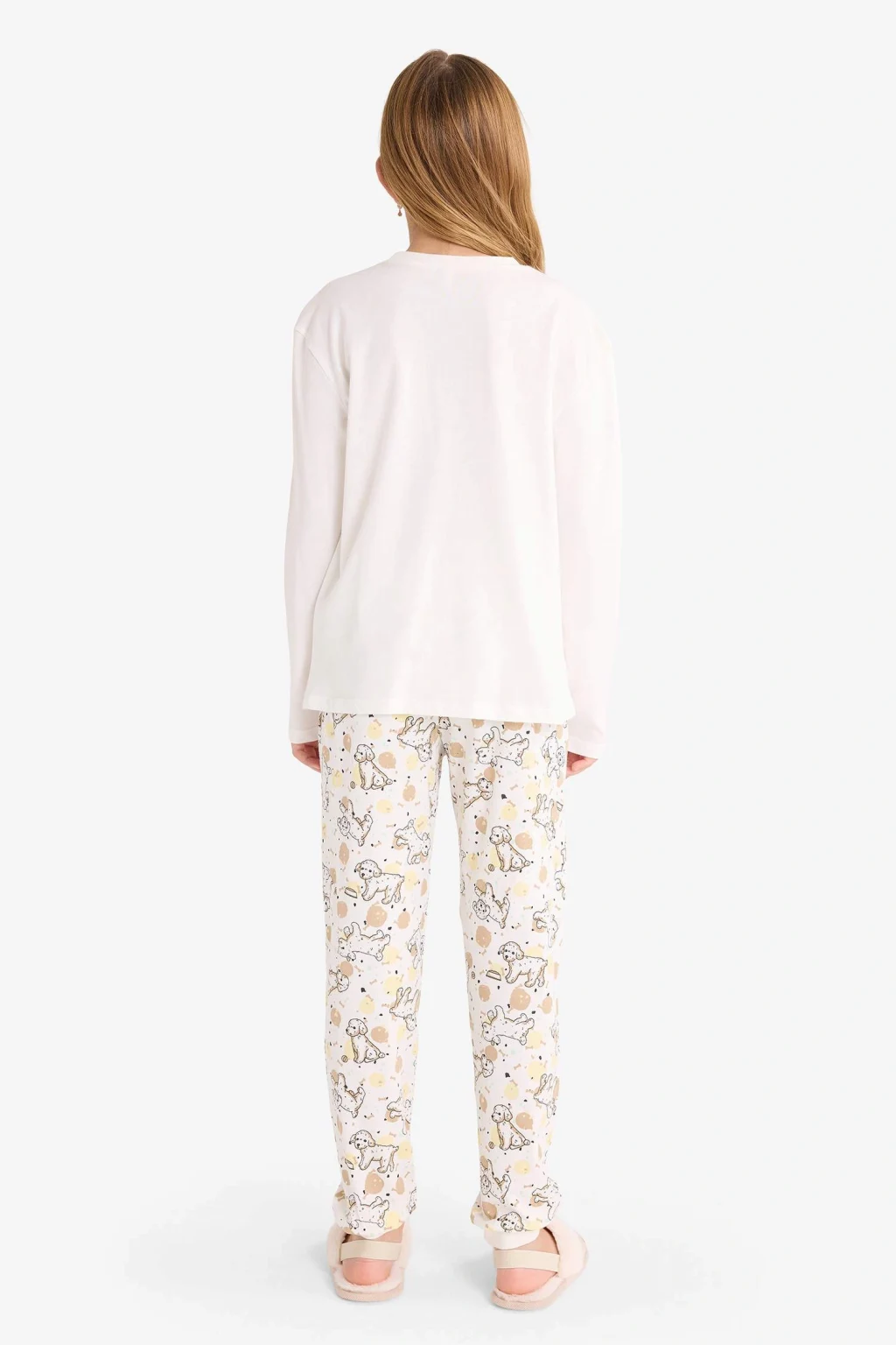 Kız çocuk baskılı pijama takımı, uzun kollu üst ve uzun alt tasarımıyla soğuk gecelerde sıcak tutar. Yumuşak kumaşı ve sevimli baskılarıyla hem rahat hem eğlenceli bir uyku deneyimi sunar. Gün boyu konfor, gece boyu huzurlu bir uyku sağlar.