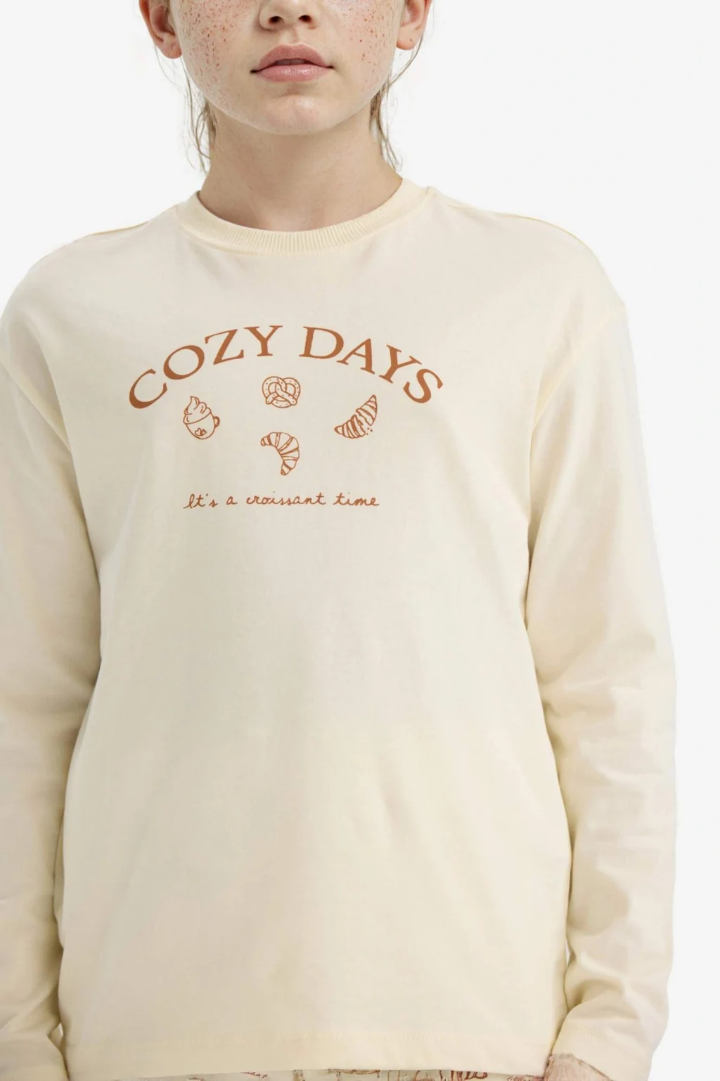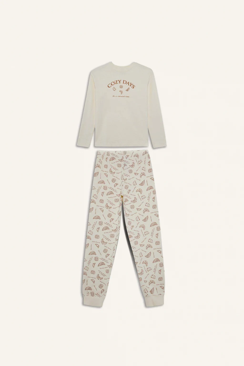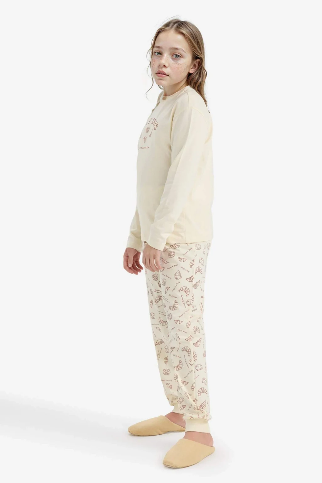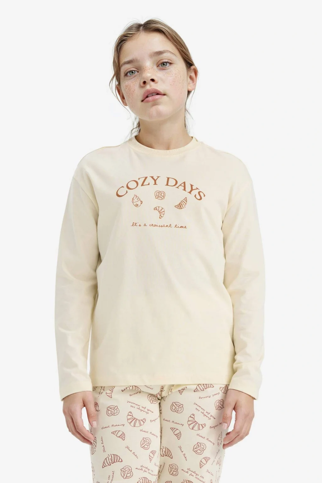 Baskılı uzun kollu üst ve desenli uzun altından oluşan kız çocuk pijama takımı, yumuşak kumaşıyla rahat ve sıcak bir uyku sağlar. Şık ve sevimli desenleriyle çocukların favorisi olacak konforlu bir tercih.