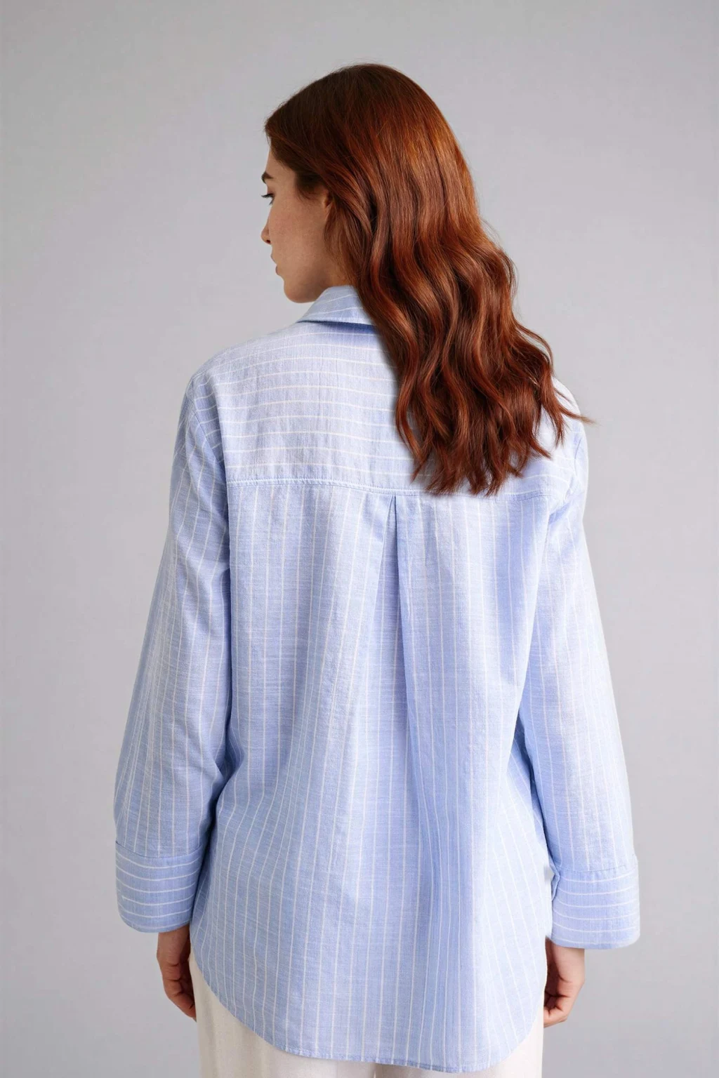 Defacto D7341AXBE745 Mavi Relax Fıt Gömlek Yaka Poplin Tunik