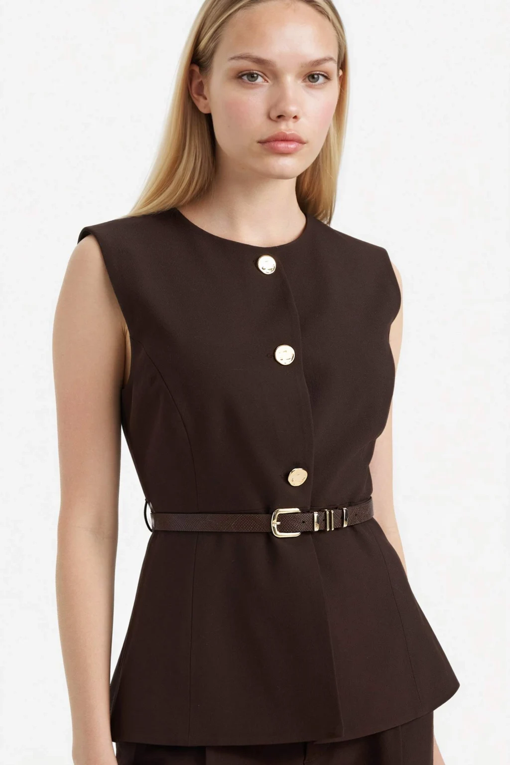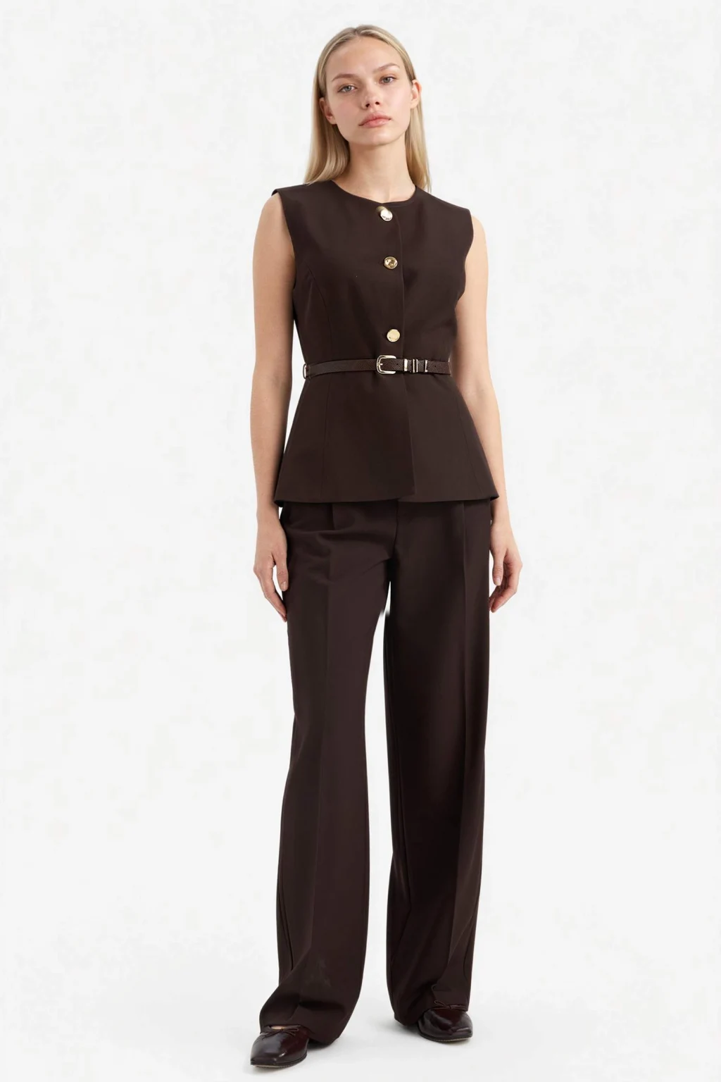 Vücuda oturan fitted kesimi ve bisiklet yaka tasarımıyla şık bir siluet sunan yelek, esnek ve yumuşak dokusuyla gün boyu konfor sağlar. Minimal tasarımı sayesinde her kombine kolayca uyum sağlar.