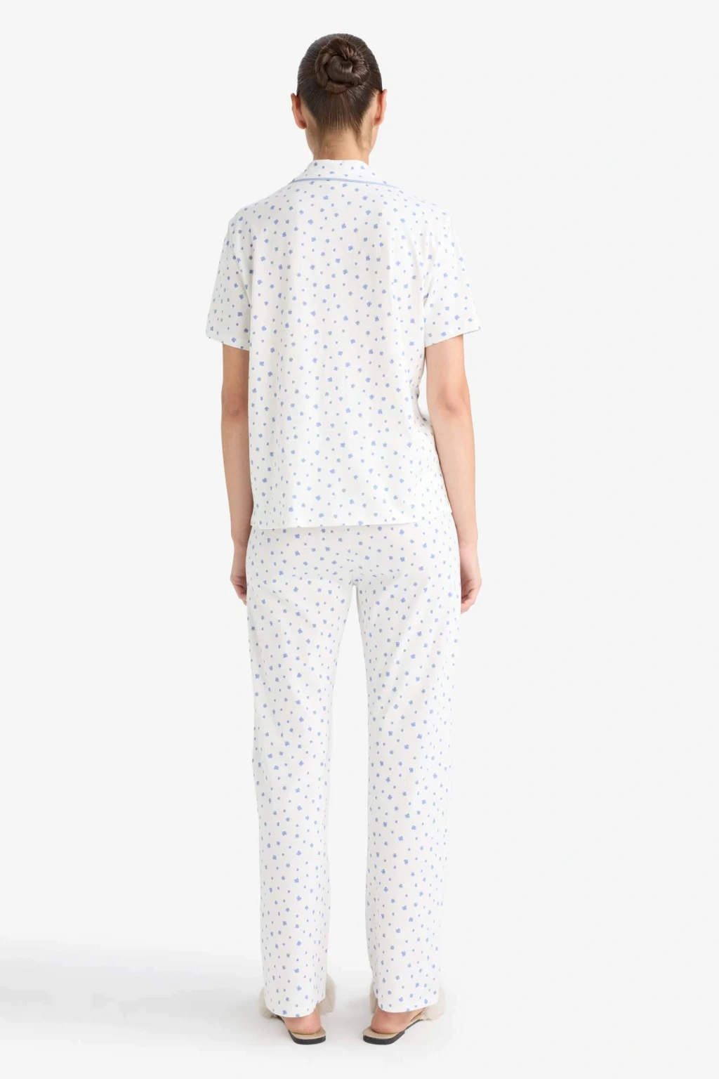 Regular fit, desenli kısa kollu üst ve uzun alt pijama takımı, yumuşak ve nefes alabilen kumaşıyla konforlu uyku sağlar. Şık desenleriyle hem rahat hem şık bir ev giyim seçeneğidir.