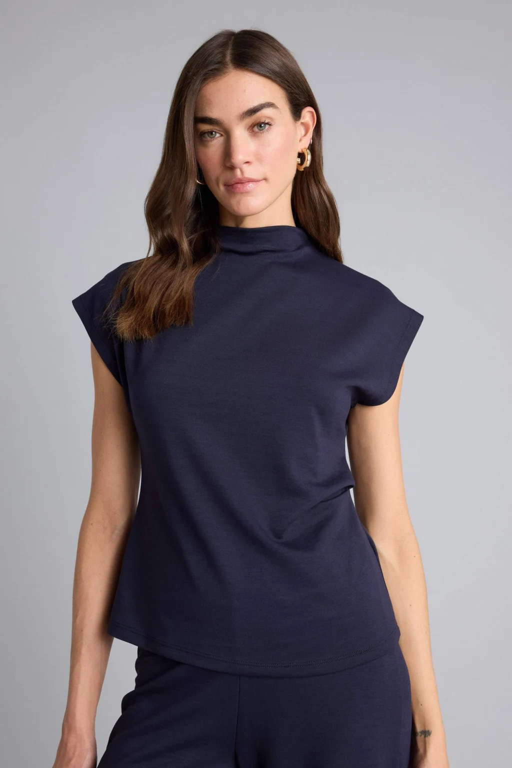 Defacto F7760AXNV135 Lacivert Slım Fıt Yarım Balıkçı Yaka Kısa Kollu Tişört