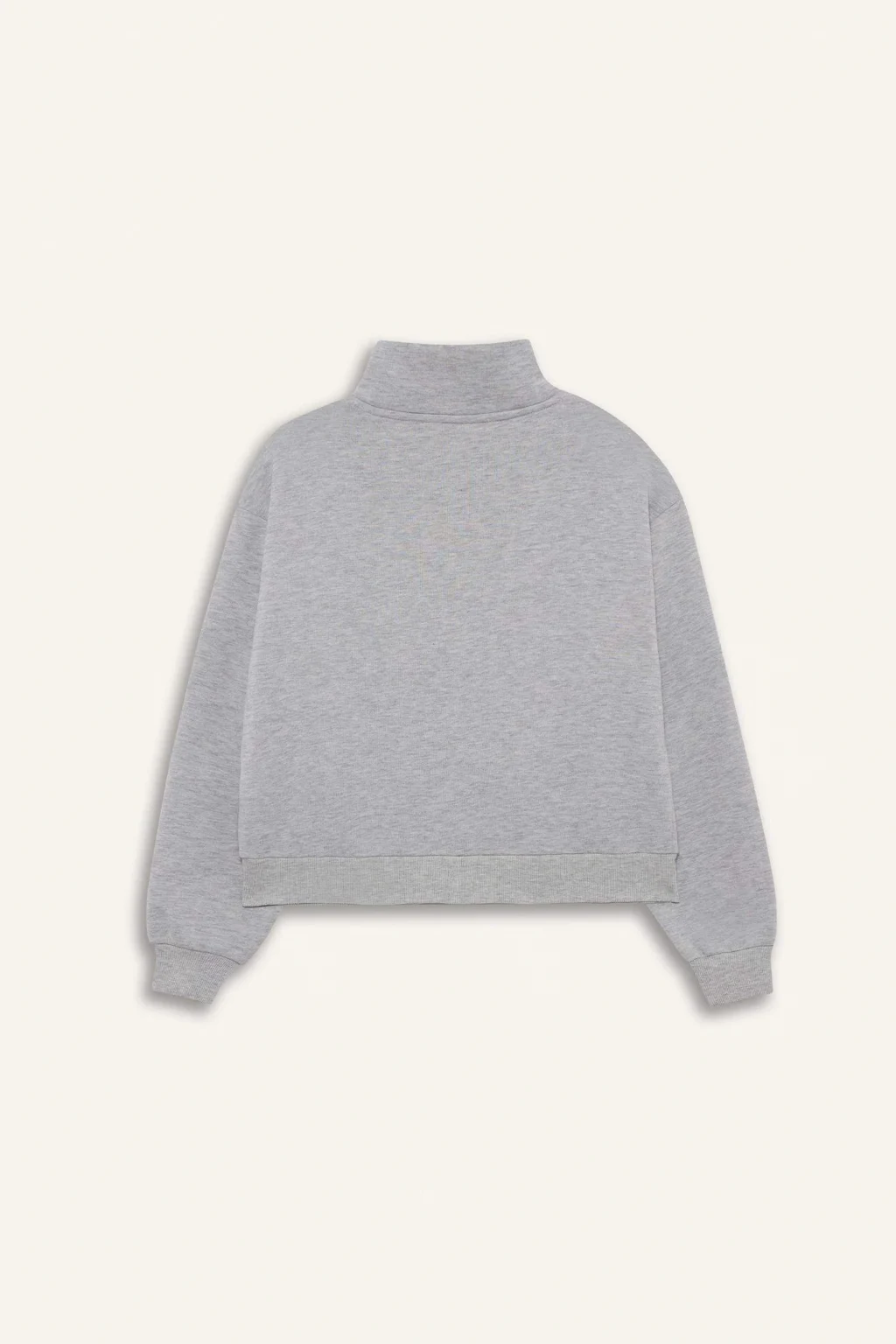 Relax fit kesimi ve yarım balıkçı yaka tasarımıyla rahatlık sunan bu kalın fermuarlı sweatshirt, şık baskı detayıyla dikkat çeker. Soğuk günlerde sıcak tutarken, modern bir stil yaratır.