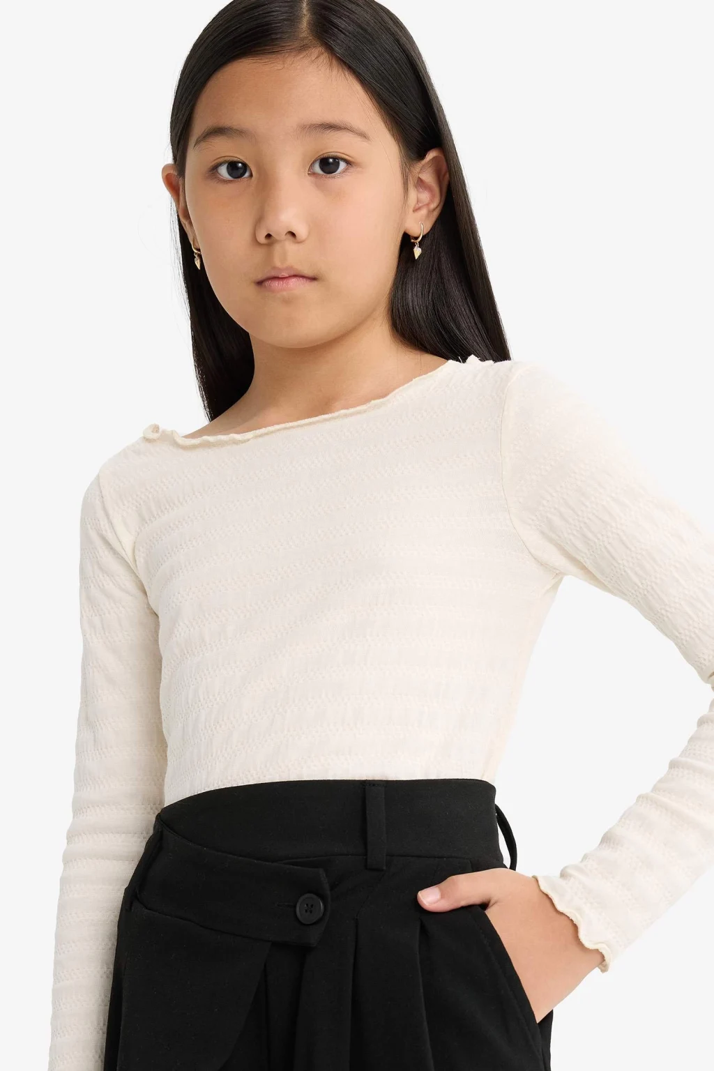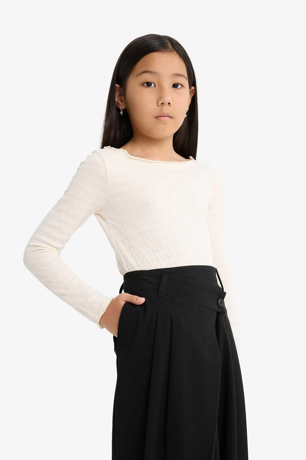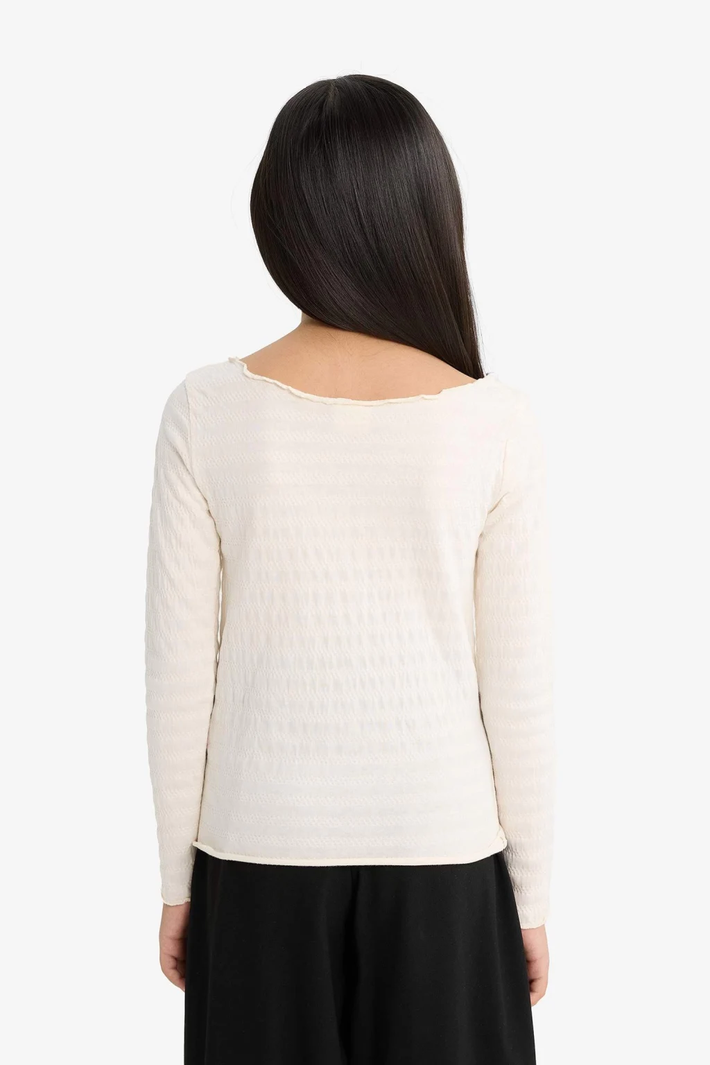 Fitted kesimiyle vücuda oturan bu kız çocuk uzun kollu tişört, bisiklet yaka ve bürümcük kumaşıyla hem şık hem konforlu bir stil sunar. Hafif yapısıyla günlük kullanım için ideal bir tercih.