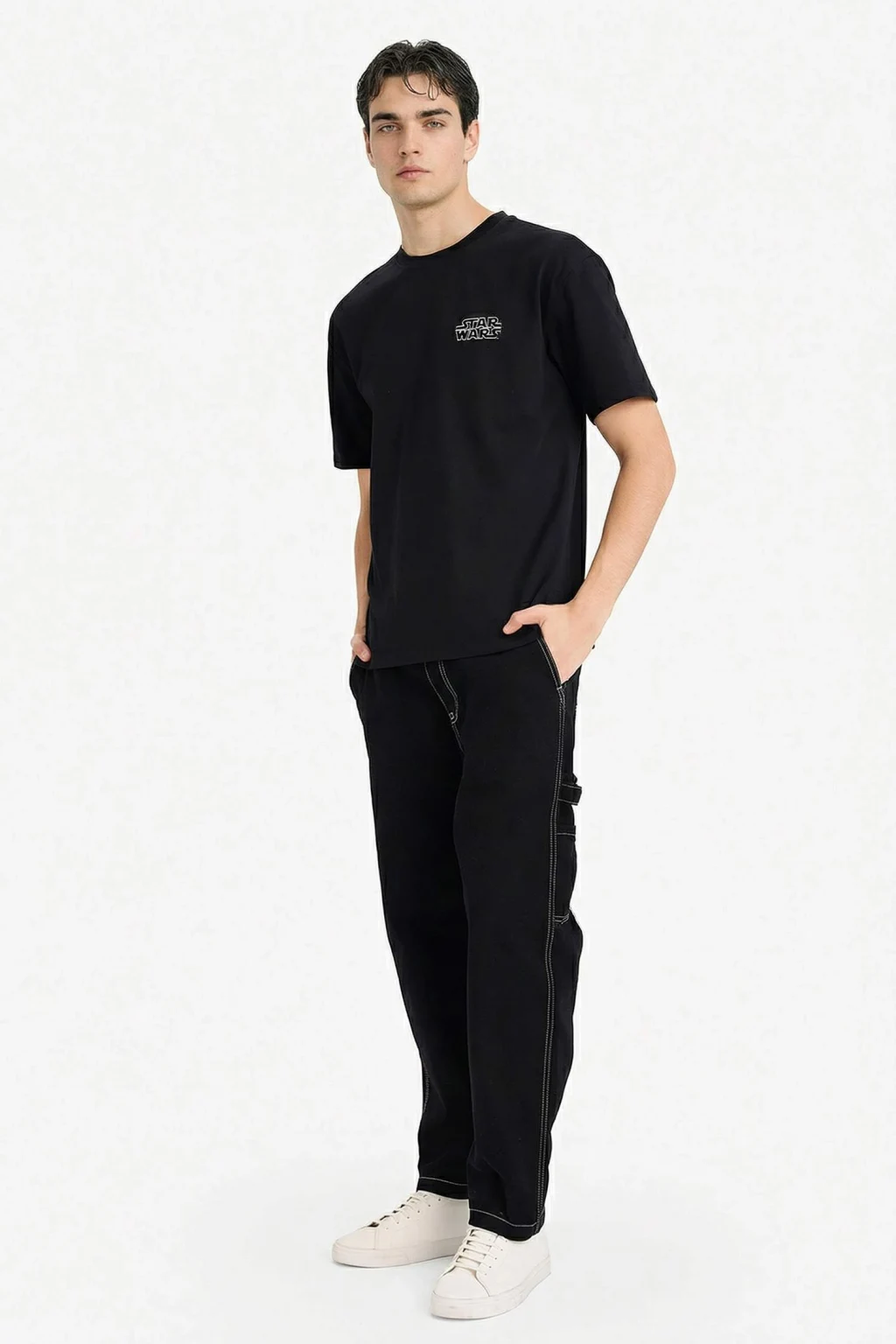 Star Wars temalı boxy fit bisiklet yaka kısa kollu tişört, sırt baskısıyla dikkat çeken modern bir tarz sunar. Rahat kesimi ve yumuşak kumaşı sayesinde gün boyu konfor sağlarken, özgün tasarımıyla kombinlere karakter katar.