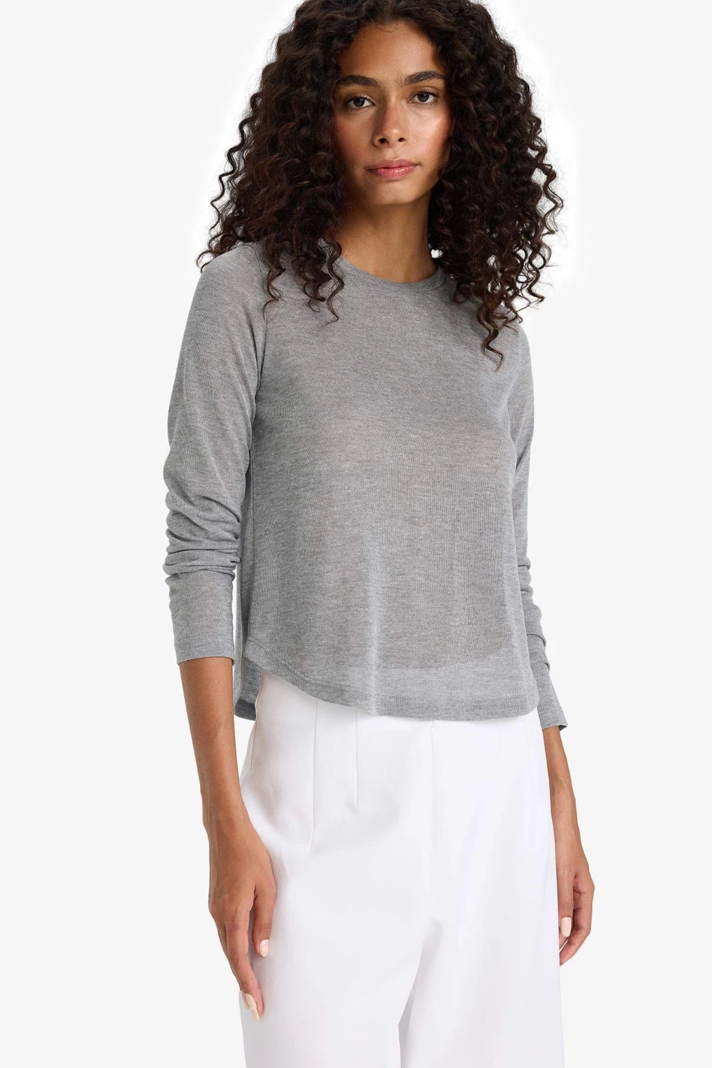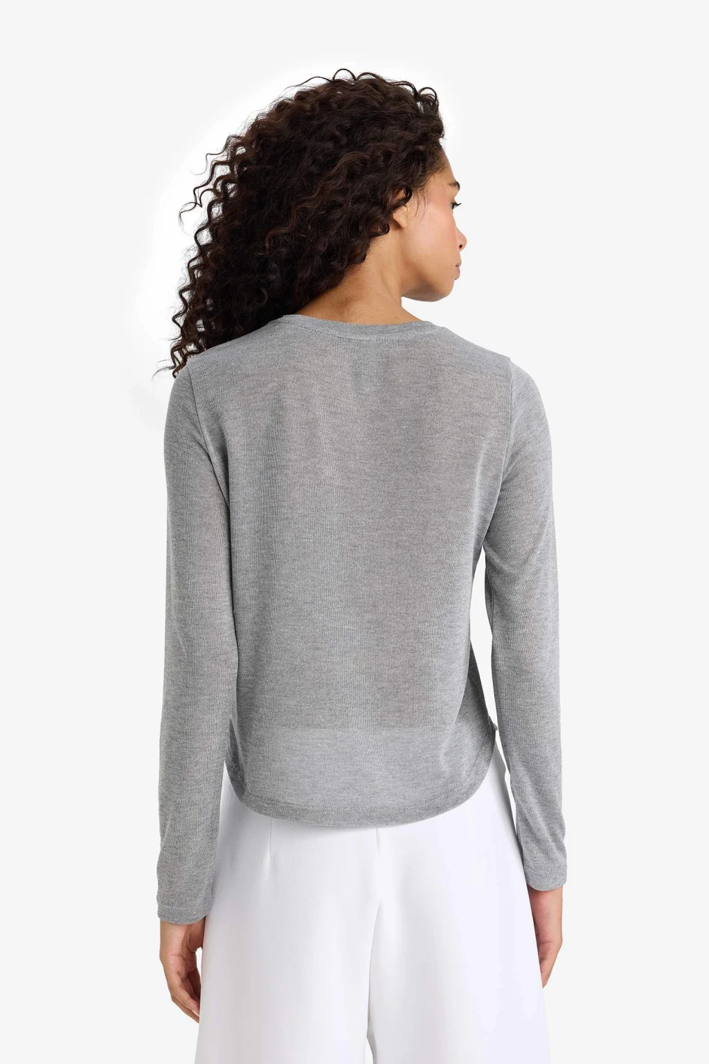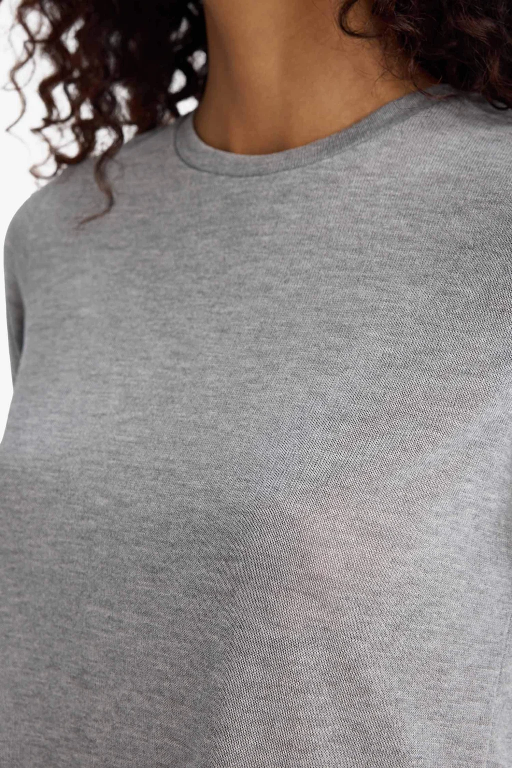 Defacto F8182 Gri Regular Fit Bisiklet Yaka Uzun Kollu Tişört