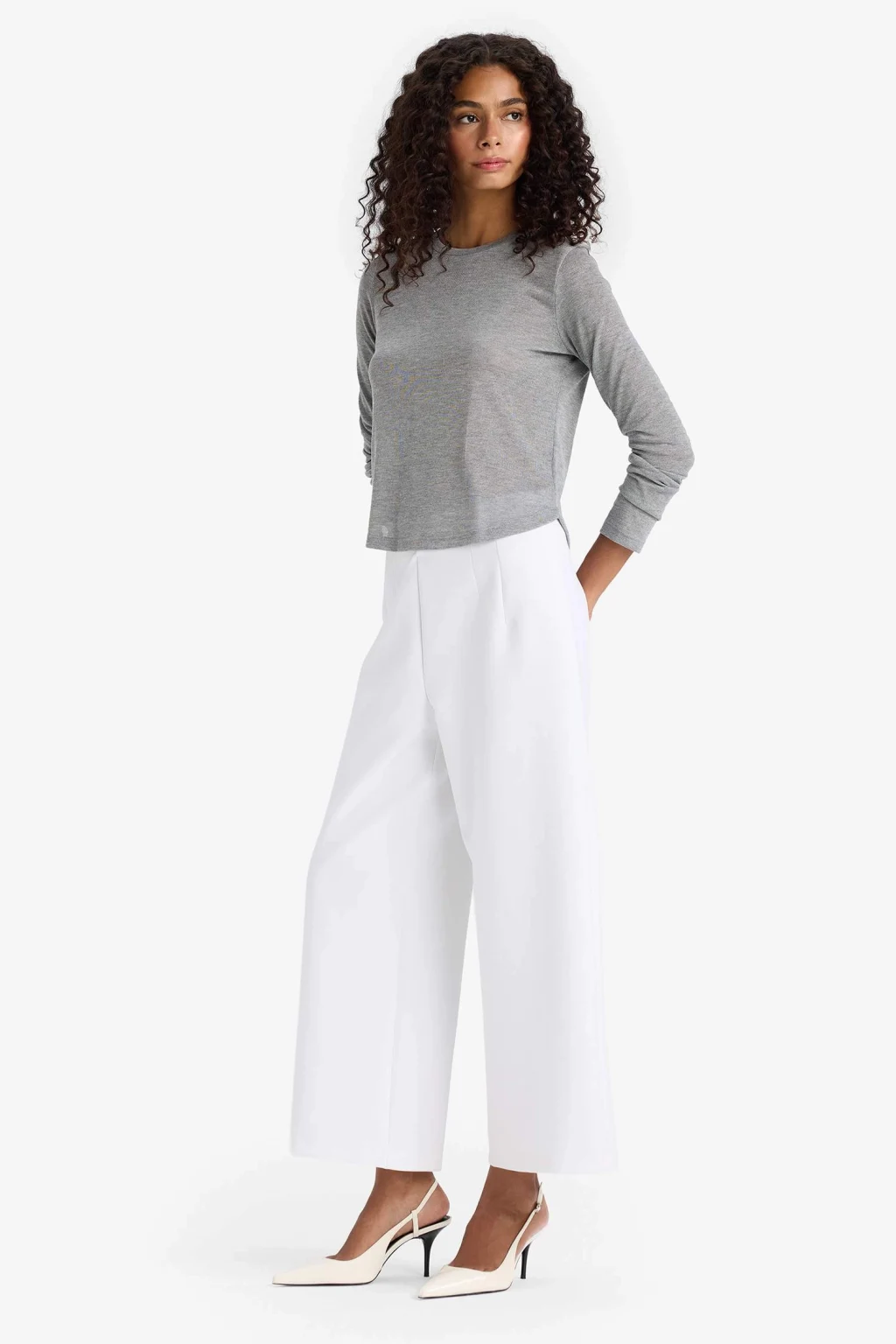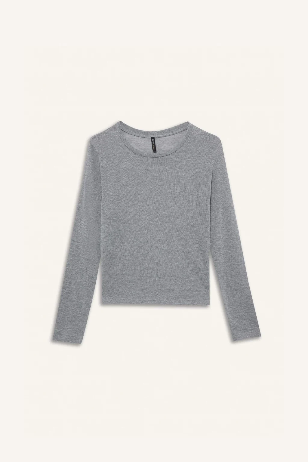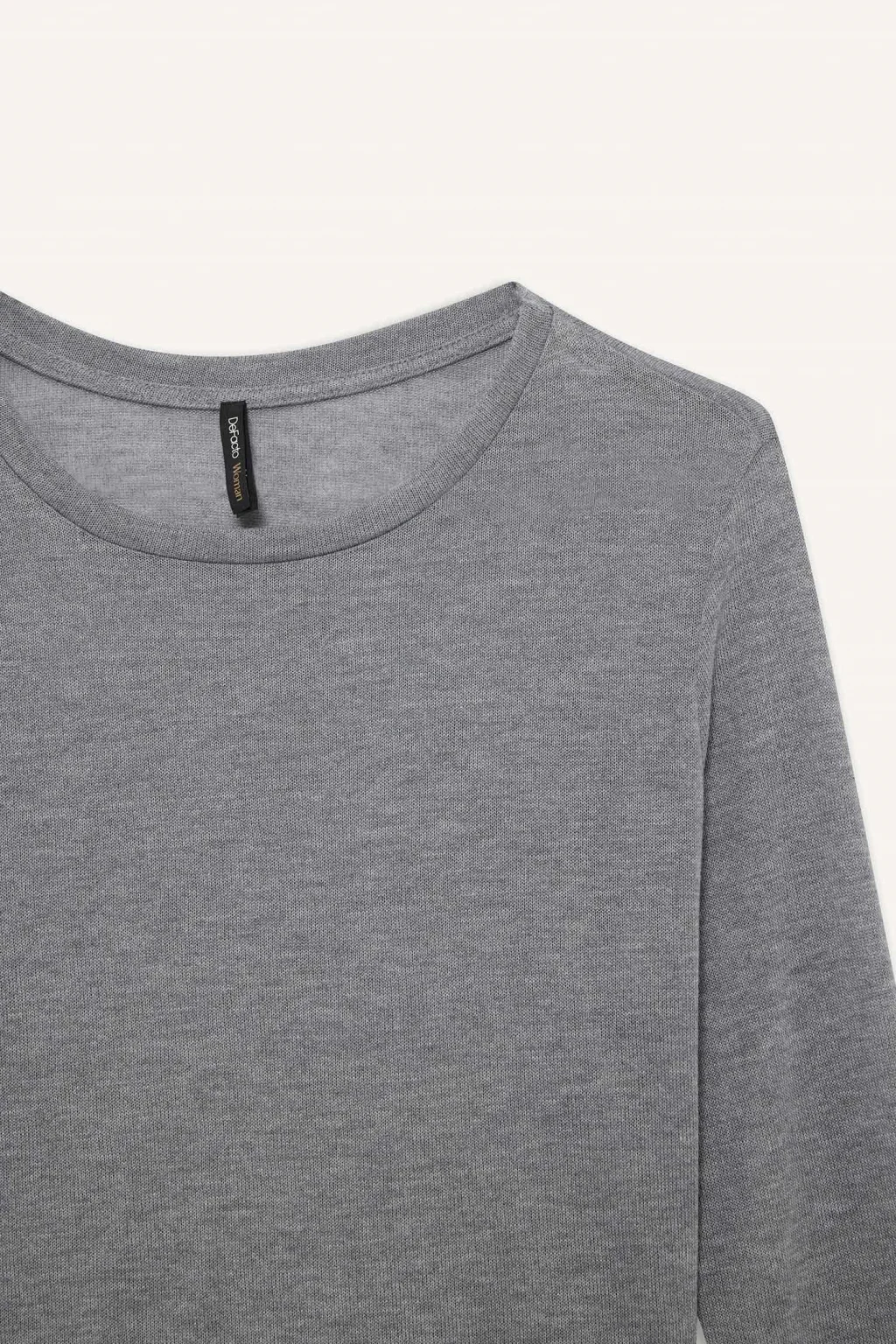 Defacto F8182 Gri Regular Fit Bisiklet Yaka Uzun Kollu Tişört