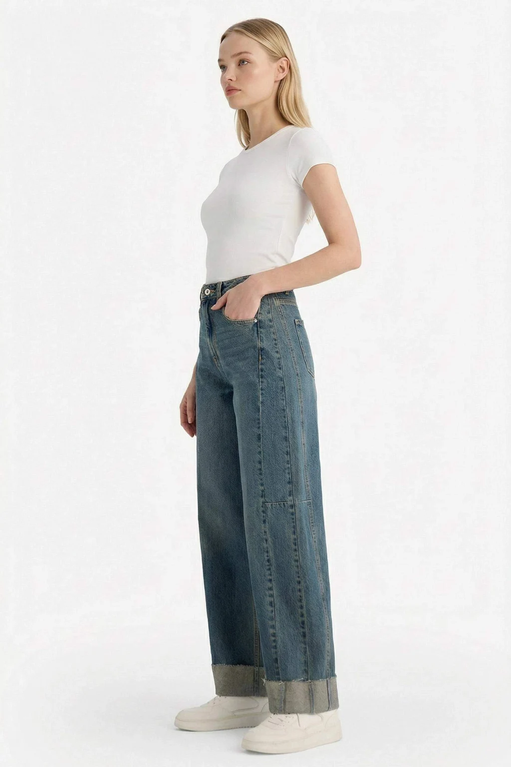 Barrel Fit Yüksek Bel Jean Pantolon, yüksek bel tasarımı ve modern kesimiyle şık bir siluet sunar. Rahat ve esnek yapısıyla hem günlük hem de şık kombinler için ideal bir tercih.