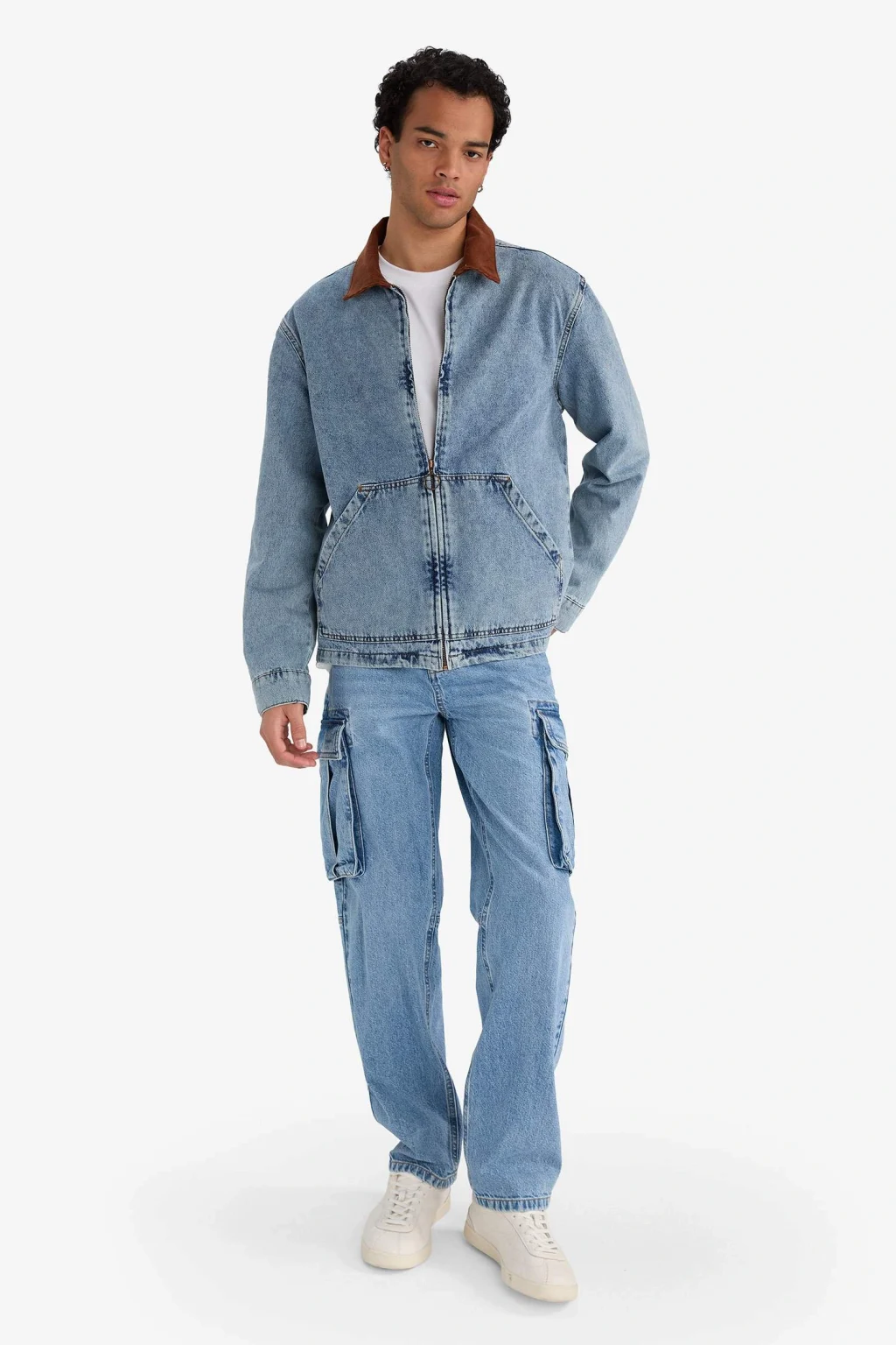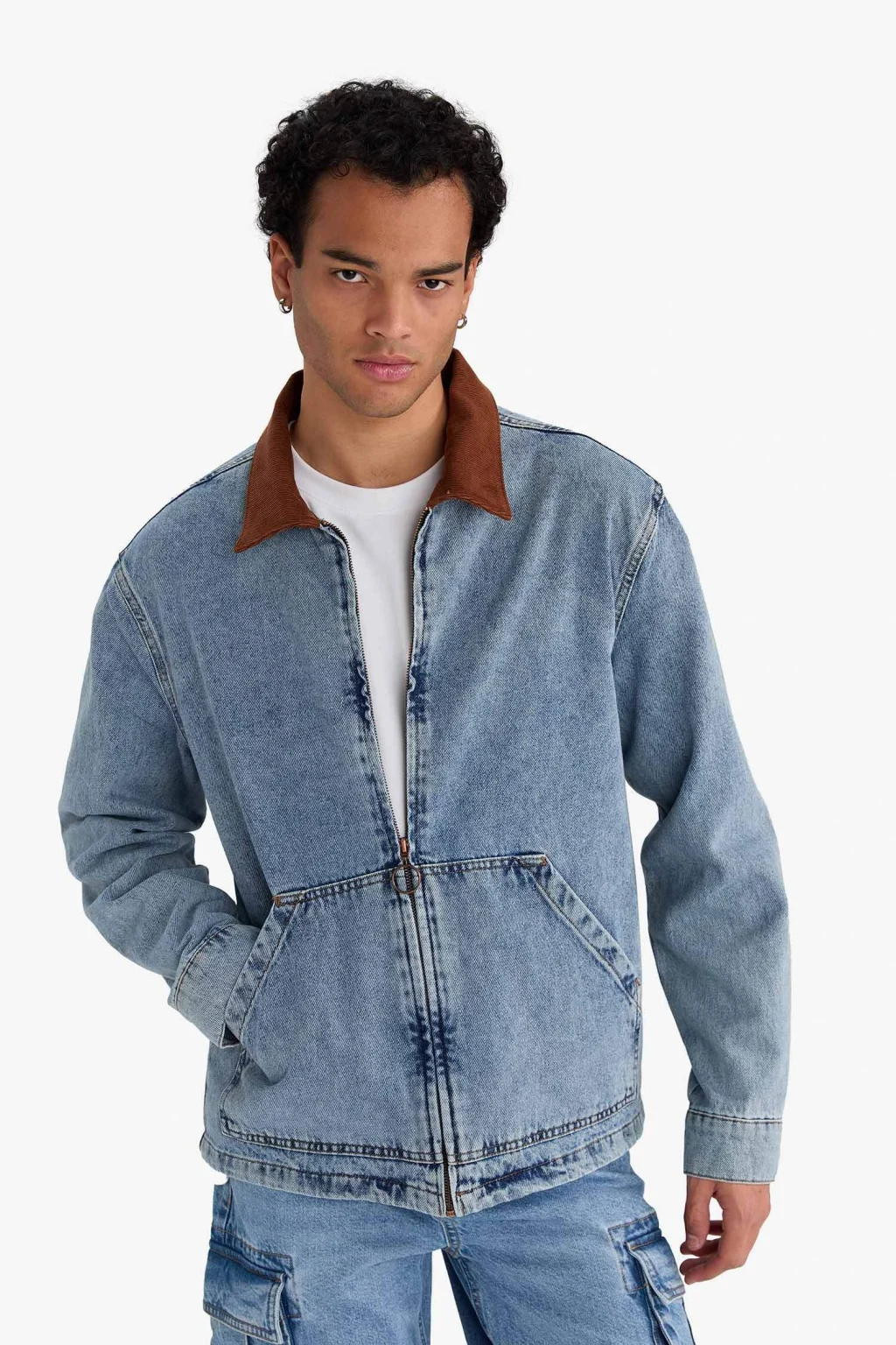 Relax fit kesimi ve kontrast yakasıyla dikkat çeken düğmeli denim ceket, rahat ve şık bir görünüm sunar. Günlük kombinlere modern bir dokunuş katar.
