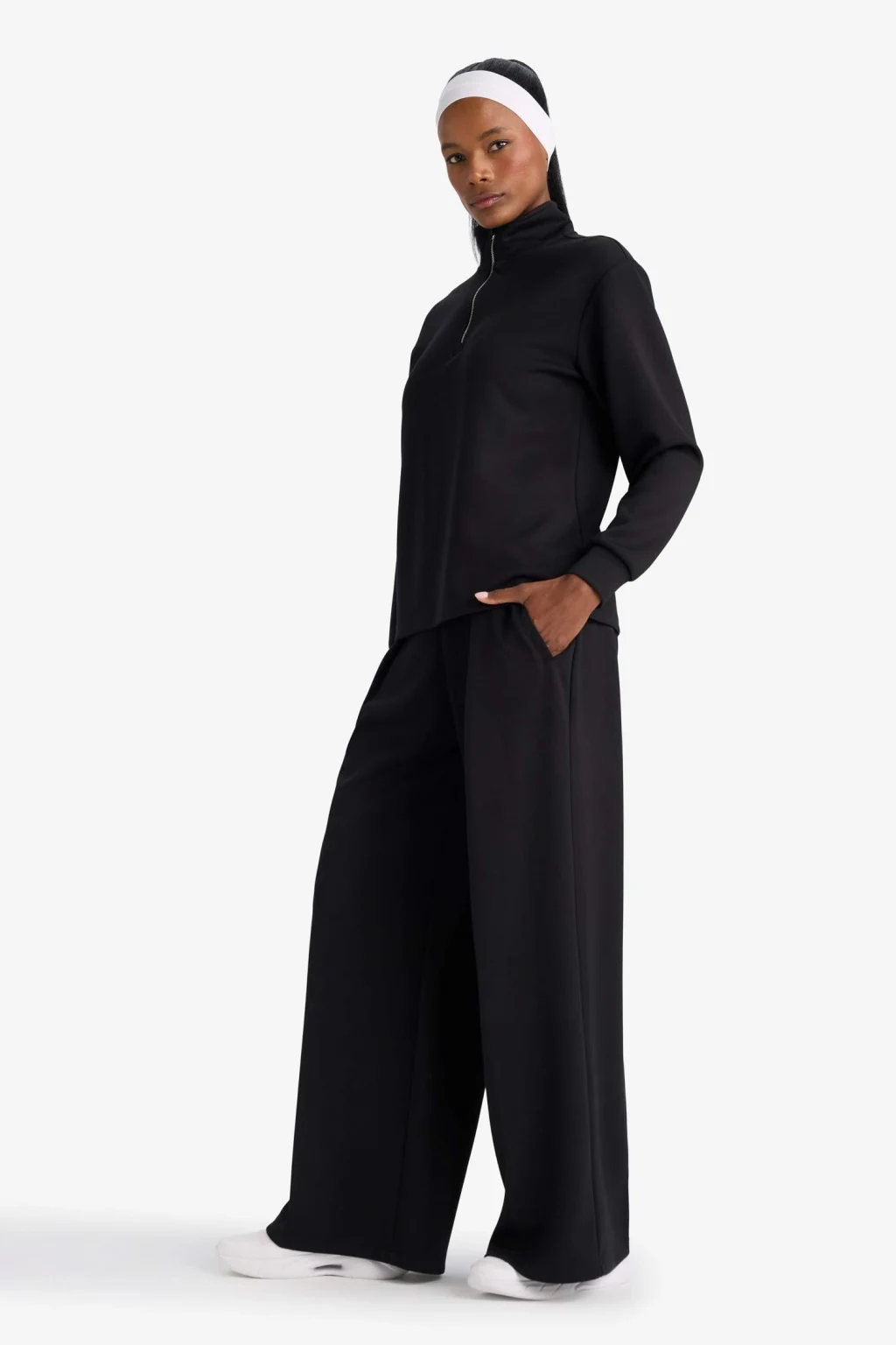 Yumuşak ve esnek modal kumaşıyla öne çıkan wide leg geniş paça standart boy eşofman altı, rahat kesimi ve modern tasarımıyla gün boyu konforlu ve şık bir kullanım sağlar.