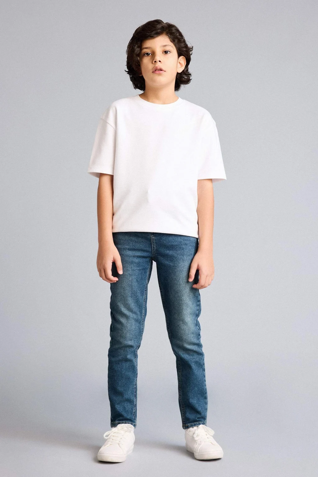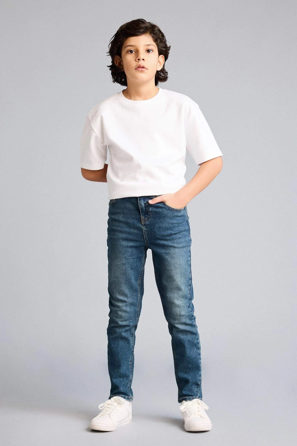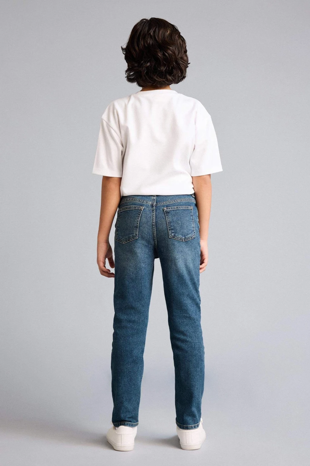 Slim fit düz paça jean pantolon, modern kesimiyle erkek çocukların günlük stiline uyum sağlar. Rahat kalıbı sayesinde hareket özgürlüğü sunarken, düz paça tasarımı zamansız bir görünüm kazandırır.