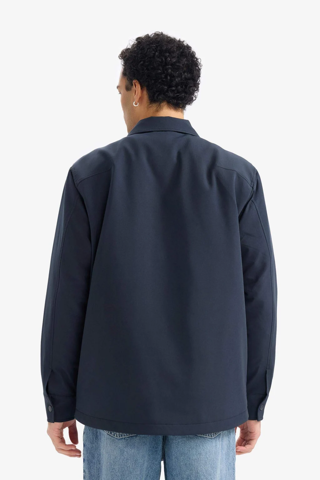 LCWAIKIKI Classic Lacivert Standart Kalıp Dik Yaka Erkek Deri Görünümlü Mont