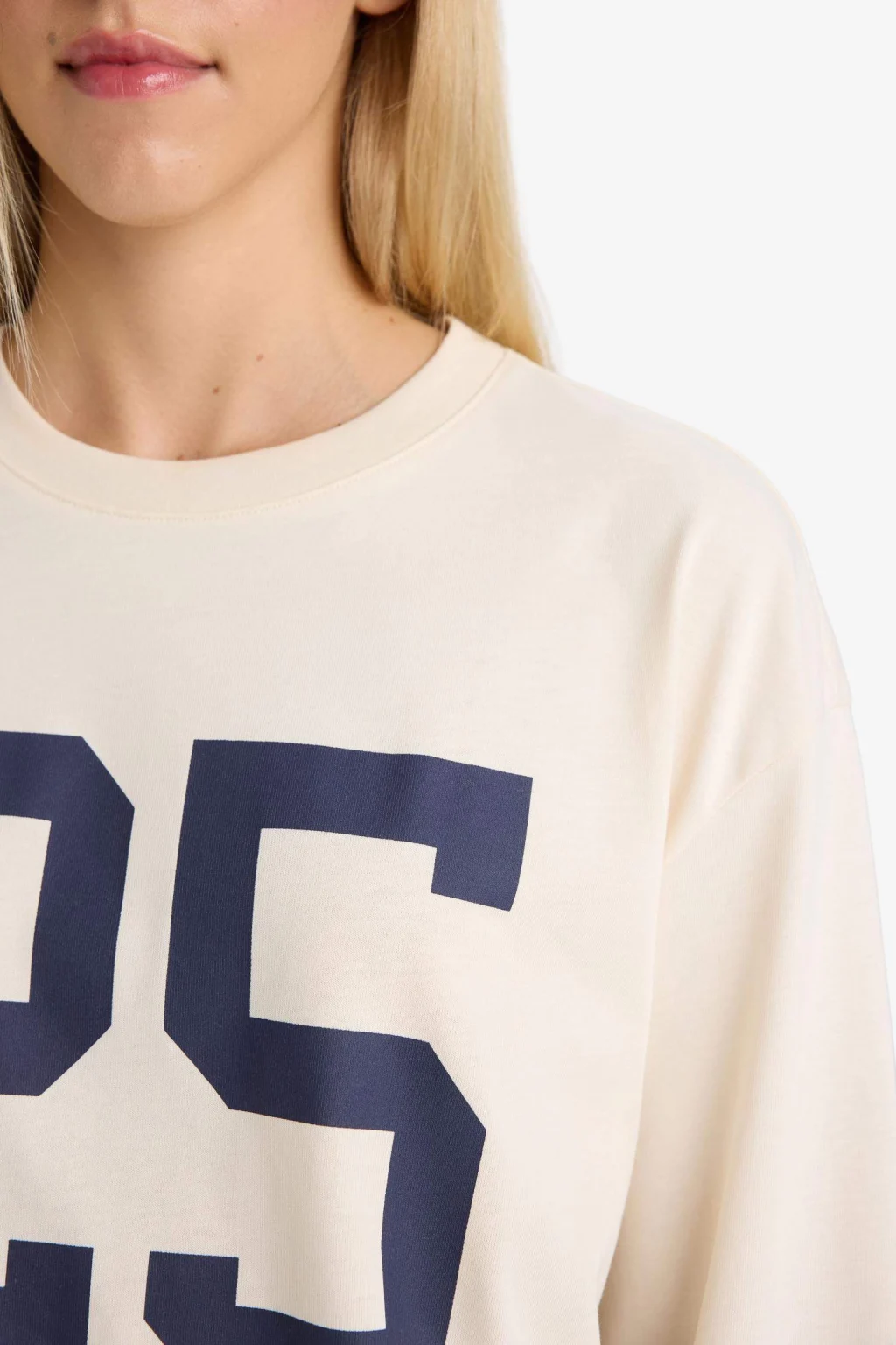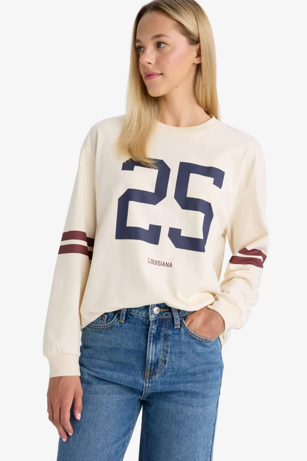Loose Fit Bisiklet Yaka Baskılı Sweatshirt, rahat kalıbı ve modern baskı detayıyla günlük stilinize cool bir hava katar. Yumuşak kumaşı sayesinde gün boyu konfor sunar. Hem evde hem sokakta şıklığı ve rahatlığı bir arada yaşamak isteyenler için ideal bir parça.