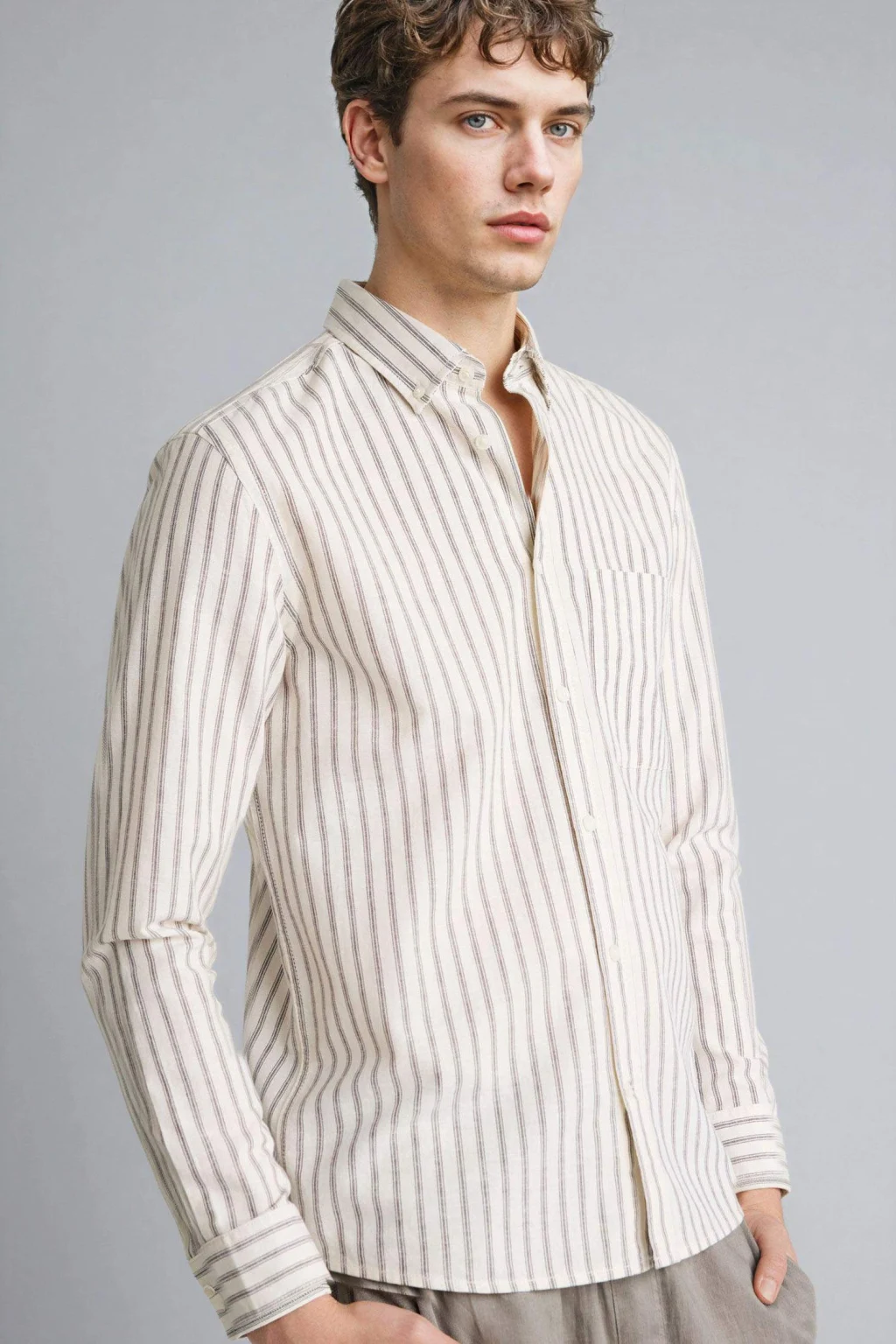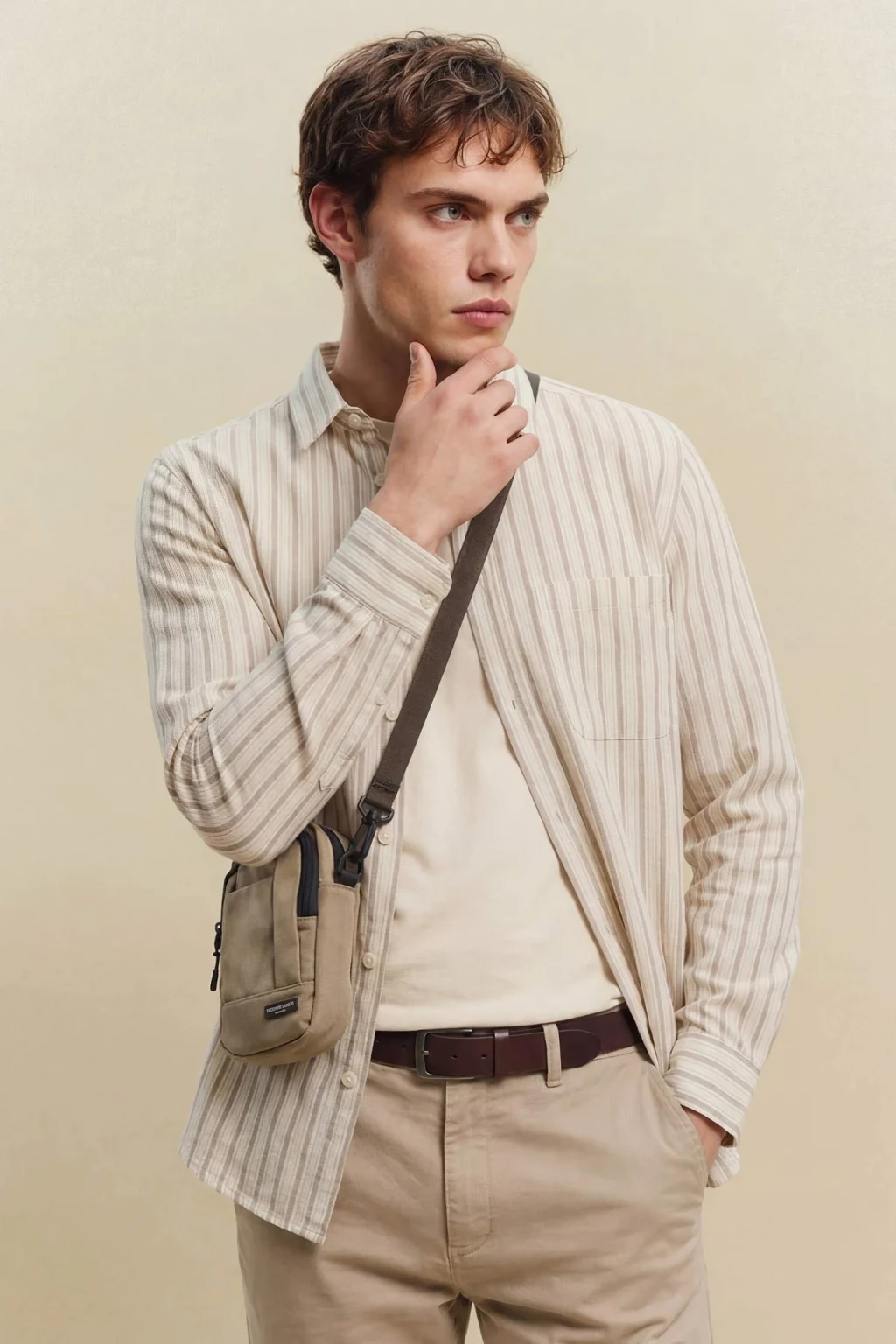 Defacto D6114AXBG815 Bej %100 Pamuk Çizgili Gömlek