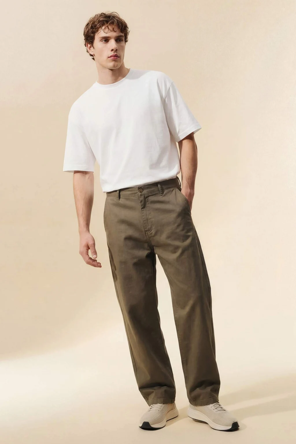 Yetişkin erkekler için temel klasik bir parça olan haki dokuma pantolon. Straıght fıt kesimi ve ilkbahar/yaz mevsimi için ideal. Twill kumaşından yapılmış ve baggy tarzıyla ön plana çıkıyor. Şıklığı ve rahatlığı bir arada sunar.