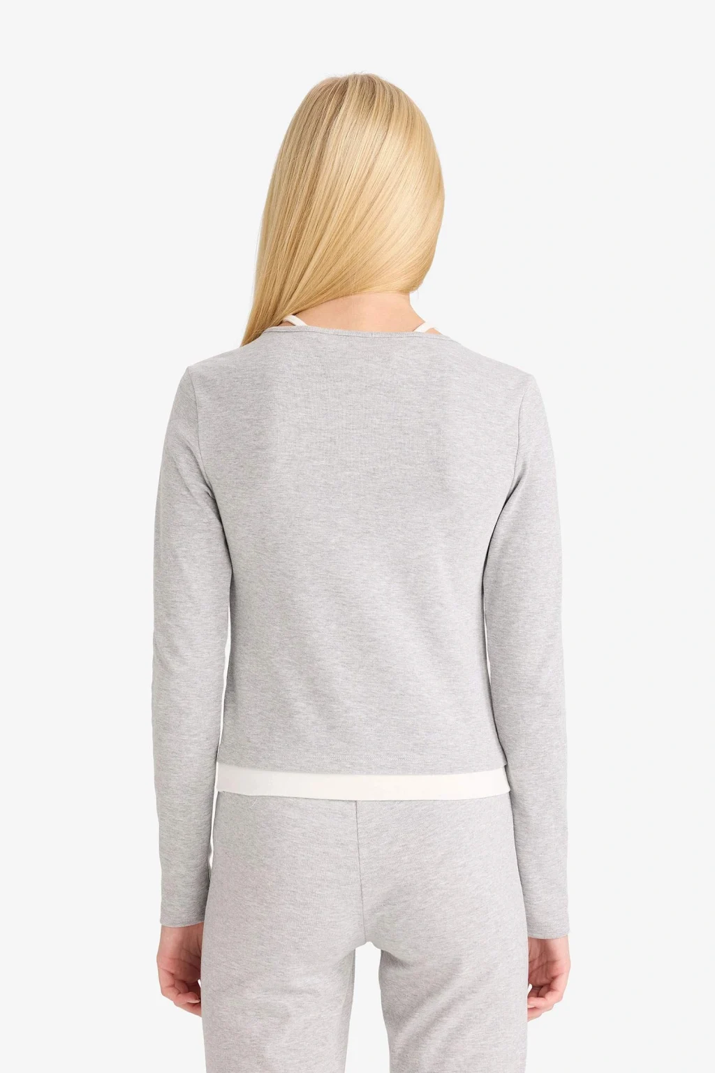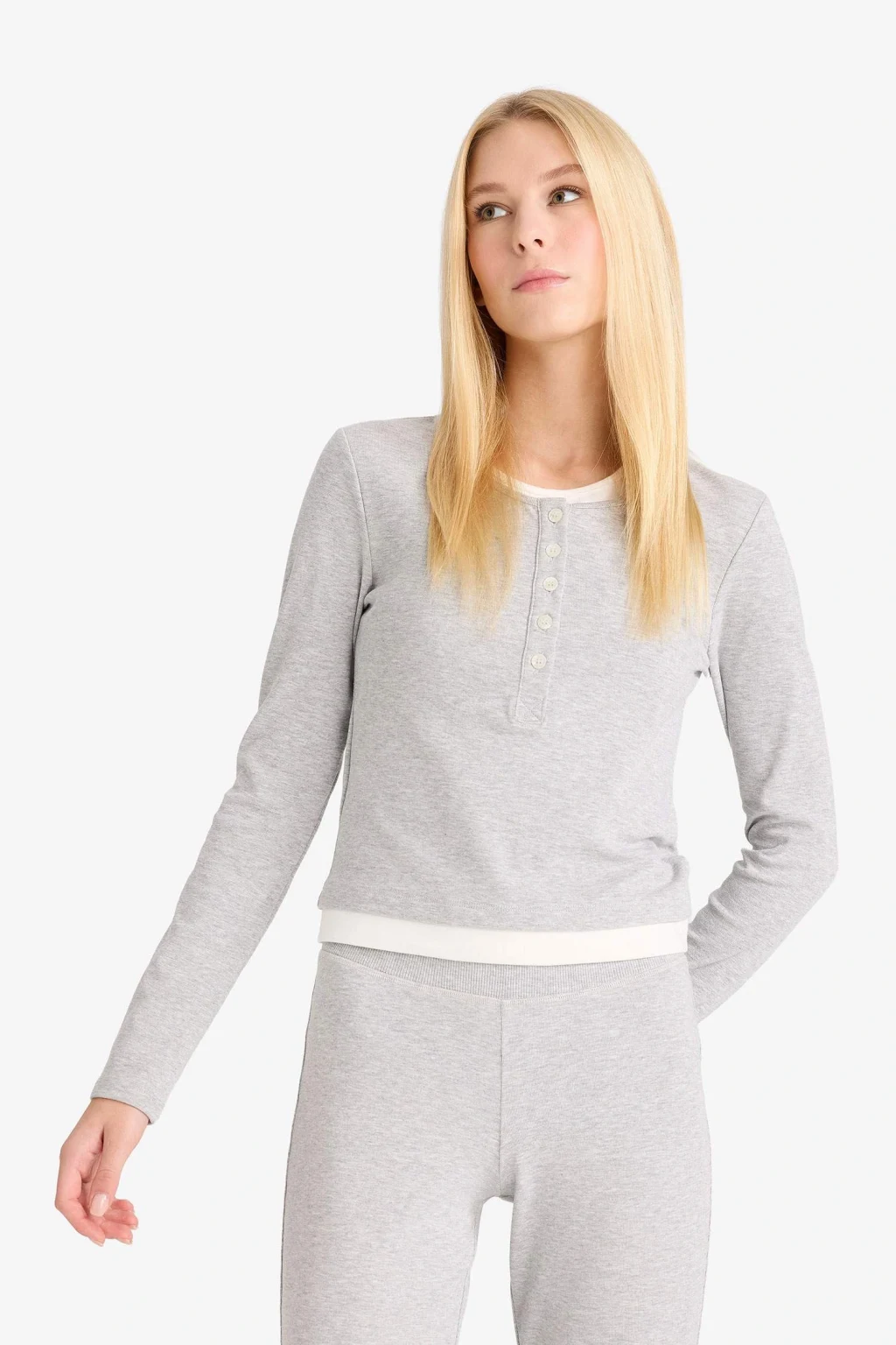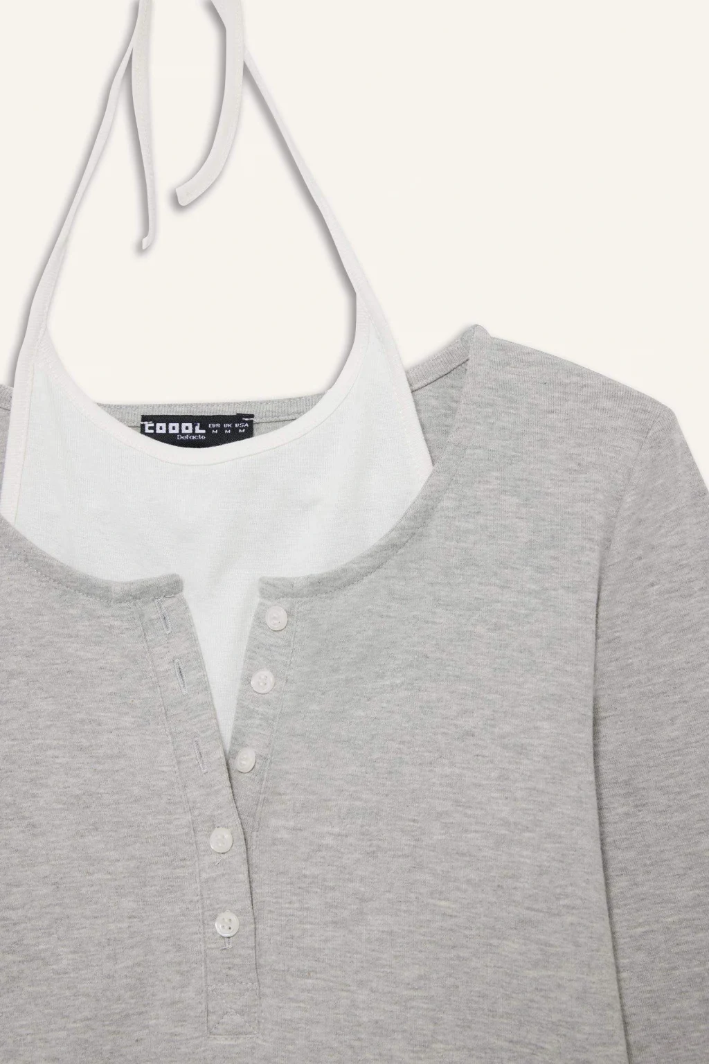 Halter yaka tasarımı ve ribana kumaşıyla bu uzun kollu tişört, modern ve şık bir görünüm sunar. Vücuda oturan yapısıyla günlük kombinler için ideal bir parçadır.