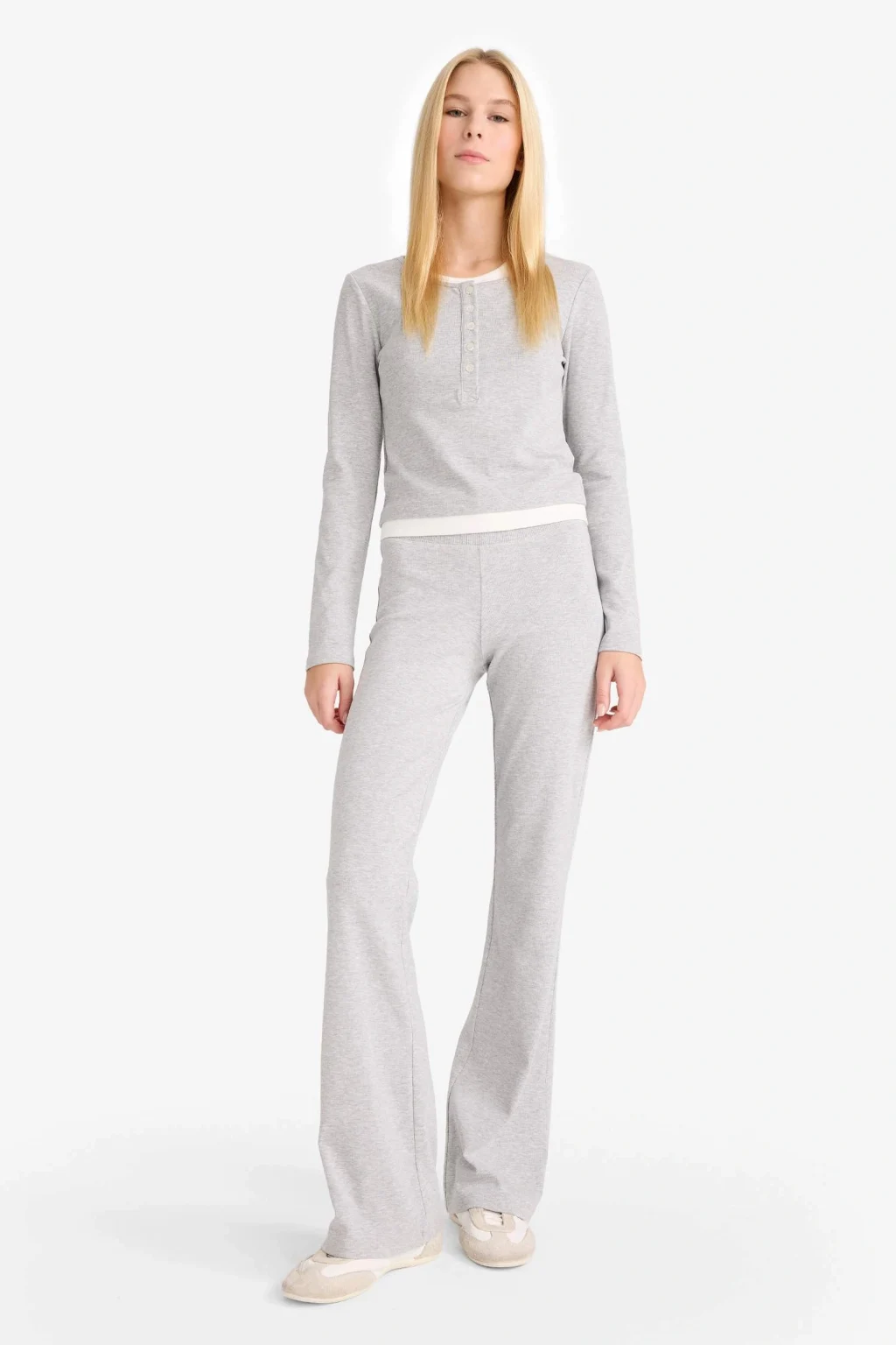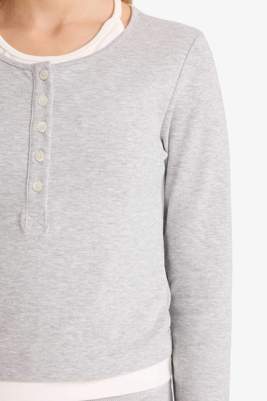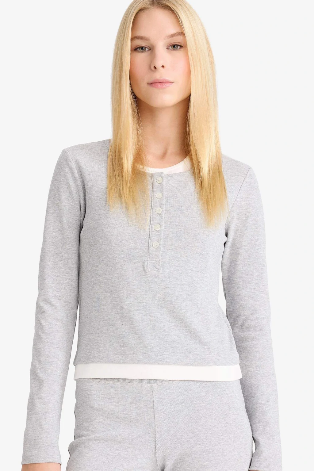 Halter yaka tasarımı ve ribana kumaşıyla bu uzun kollu tişört, modern ve şık bir görünüm sunar. Vücuda oturan yapısıyla günlük kombinler için ideal bir parçadır.