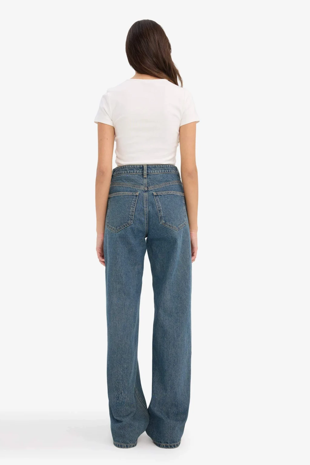 Straight wide kesimli, yüksek bel ve geniş paça jean pantolon, kar yıkamalı tasarımıyla modern ve dikkat çekici bir stil sunar. Dayanıklı denim kumaşı sayesinde konforlu bir kullanım sağlarken, geniş paça detayı trend bir görünüm kazandırır. Günlük ve casual kombinlerde şık ve rahat bir tercih olarak öne çıkar.