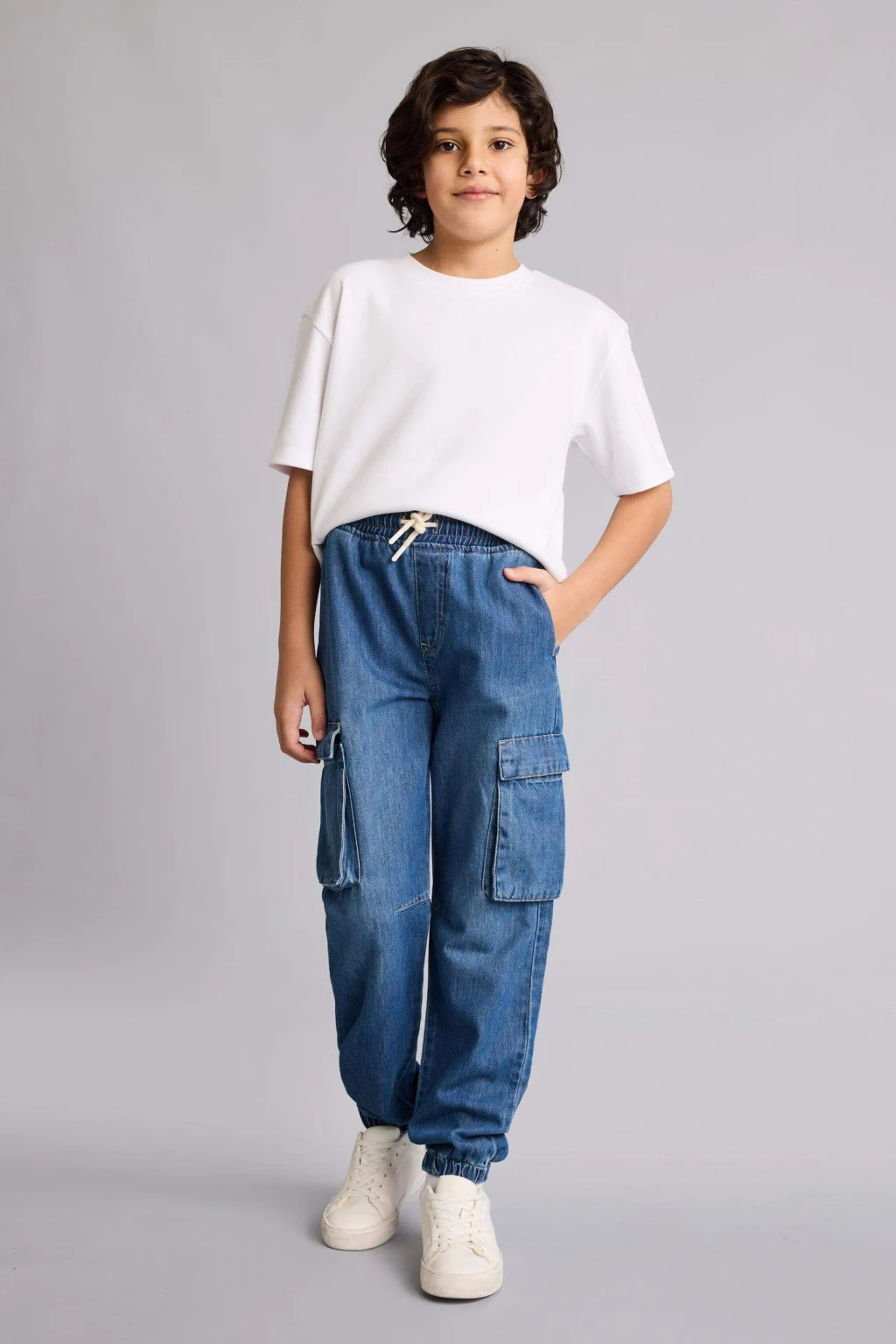 Jogger fit jean pantolon, rahat kesimi ve esnek yapısıyla erkek çocuklara gün boyu hareket özgürlüğü sunar. Lastikli paça detayı sportif bir görünüm kazandırırken, jean dokusu günlük kombinlere uyum sağlar. Hem konforlu hem de kullanışlı bir parçadır.