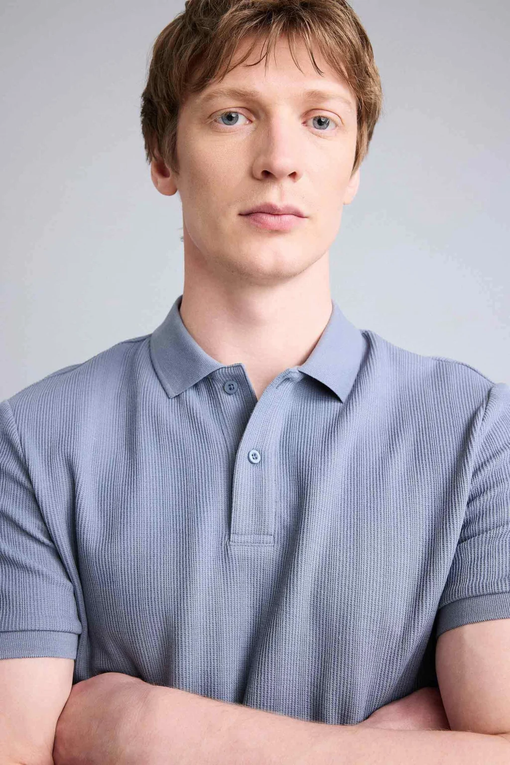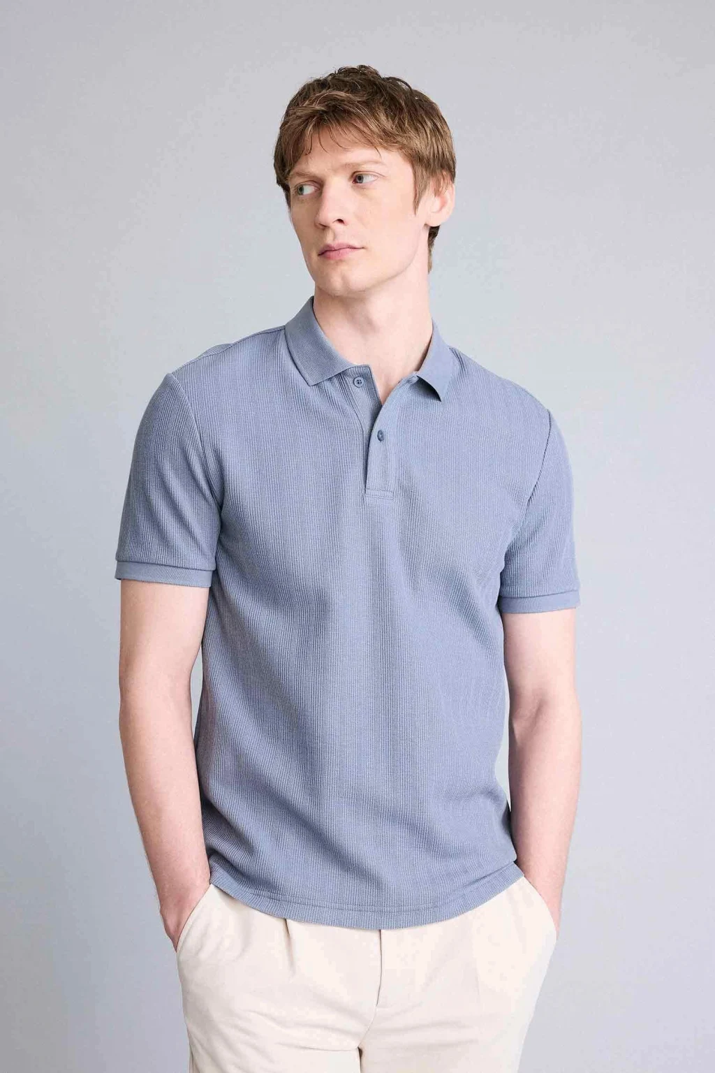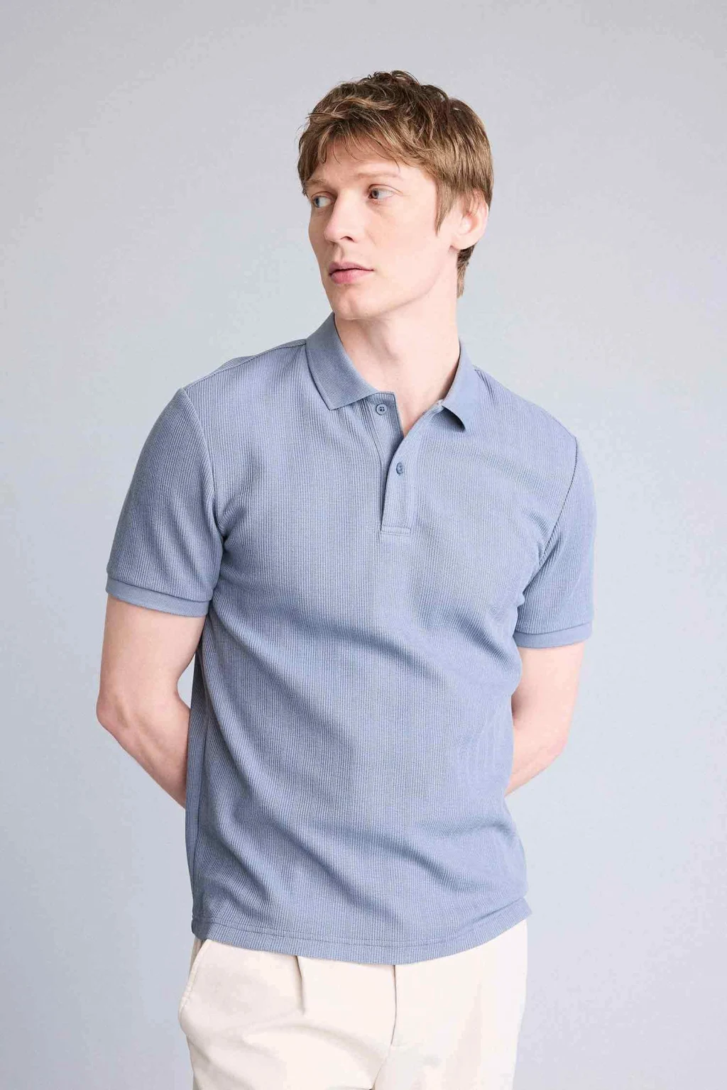 Defacto D7932AXNV241 Lacivert Regular Fıt Polo Yaka Waffle Kısa Kollu Polo Tişört