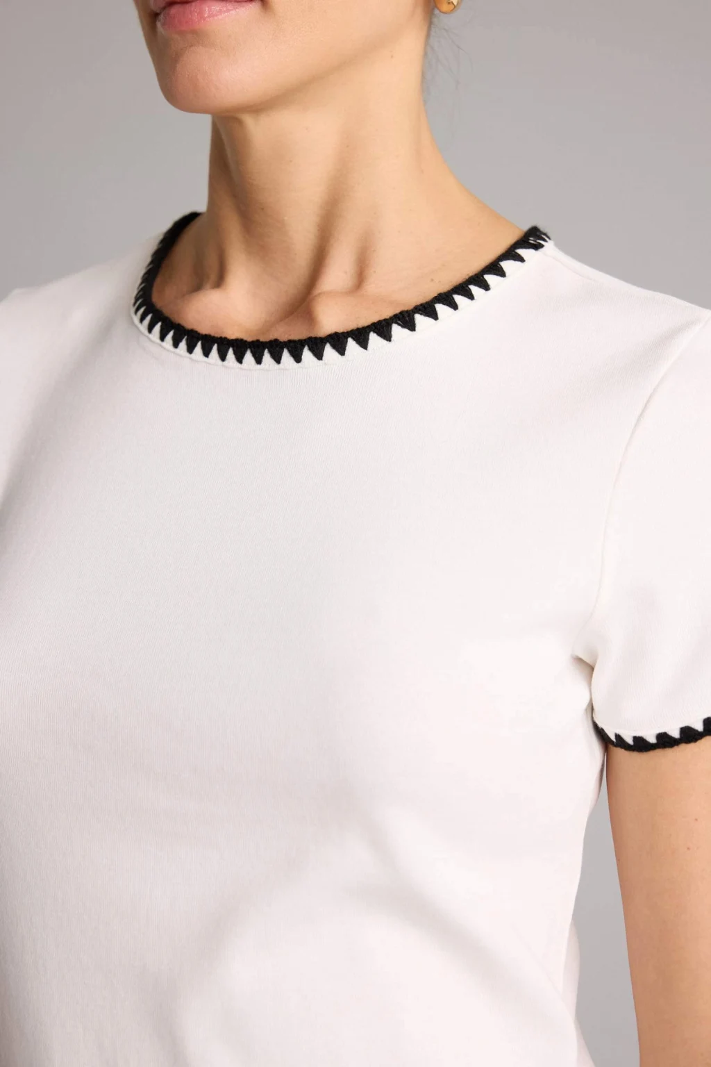 Defacto H1786AXNV31 Lacivert Fıtted Dantel Yaka Ribana Kısa Kollu Tişört