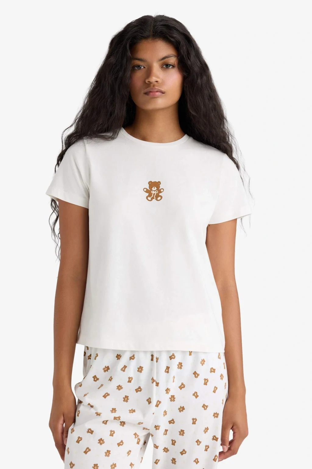 Pijama Takımı Regular Fit, baskılı kısa kollu üst ve desenli uzun alt parçalarıyla hem şık hem rahat bir uyku deneyimi sunar. Yumuşak kumaşıyla gece boyunca konfor sağlar.