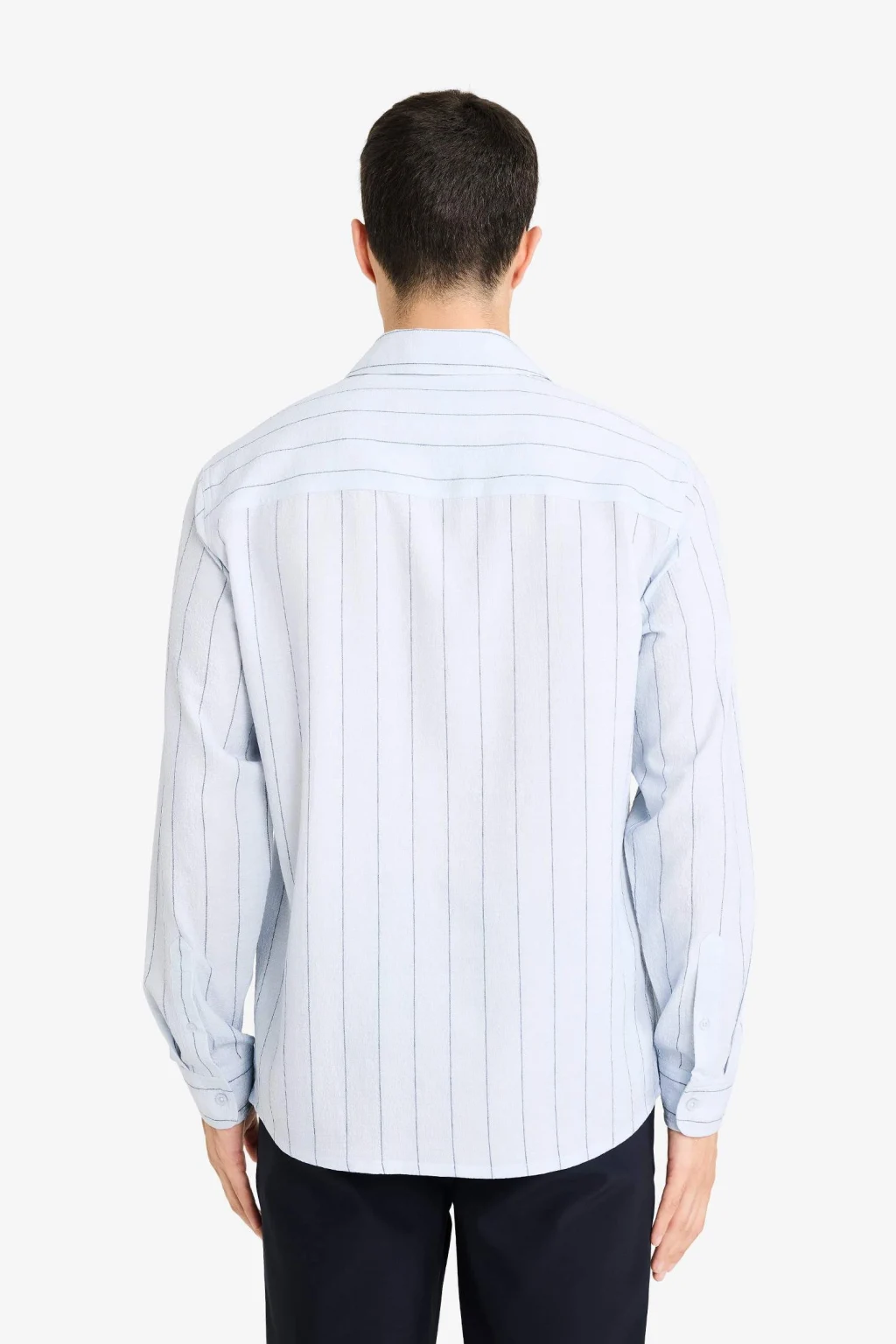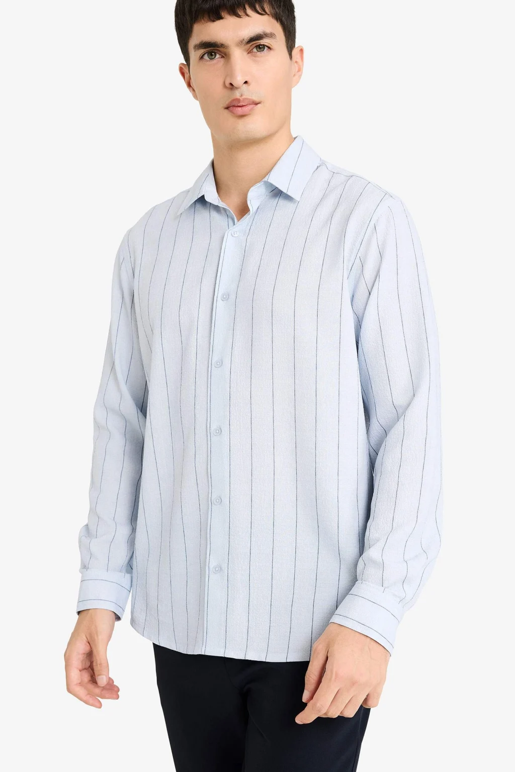 Kendinden dokulu krinkıl (buruşuk) kumaş yapısı sayesinde ütü gerektirmeyen ve zahmetsiz bir şıklık sunan bu gömlek, seyahatler ve yoğun günler için idealdir. Polo yaka detayıyla klasik gömlek formuna sportif bir hava katarken, Regular Fit kesimiyle vücutta dökümlü ve konforlu bir duruş sergiler. Uzun kollu tasarımı ve nefes alabilen hafif dokusu, mevsim geçişlerinde hem tek başına hem de ceket içinde stil sahibi bir katman oluşturur.